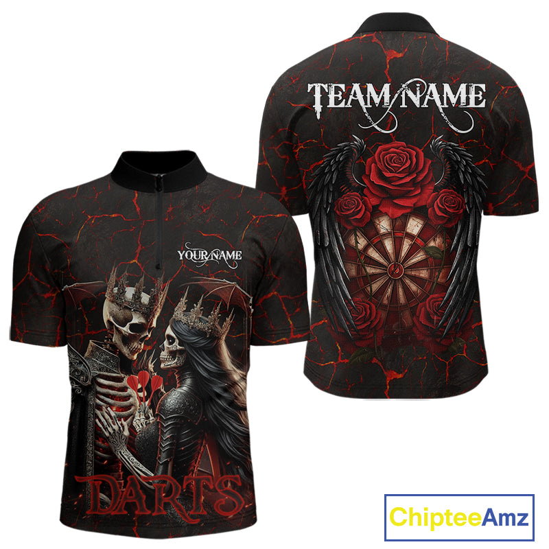 Personalized Skeleton Couple And Roses Gothic Darts Shirt For Men Custom Dart Jersey Outfit|Red TDM5038