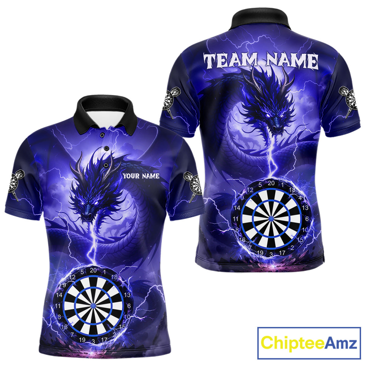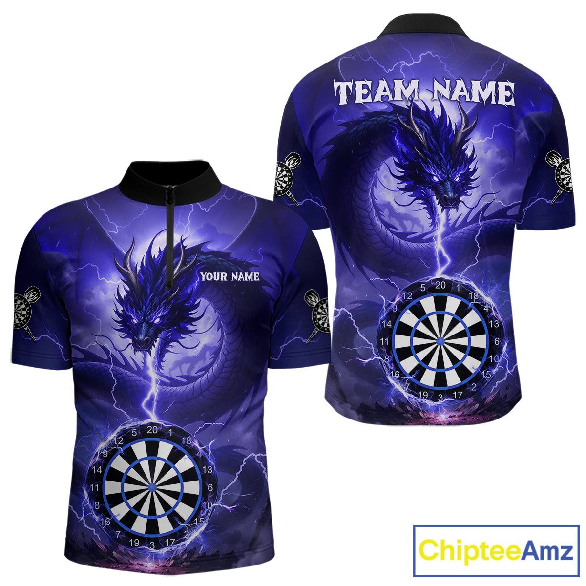 Blue Dartboard Lightning Dragon Mens Darts Shirt Custom Darts Jersey Team Polo & 1/4 Zip TDM5117