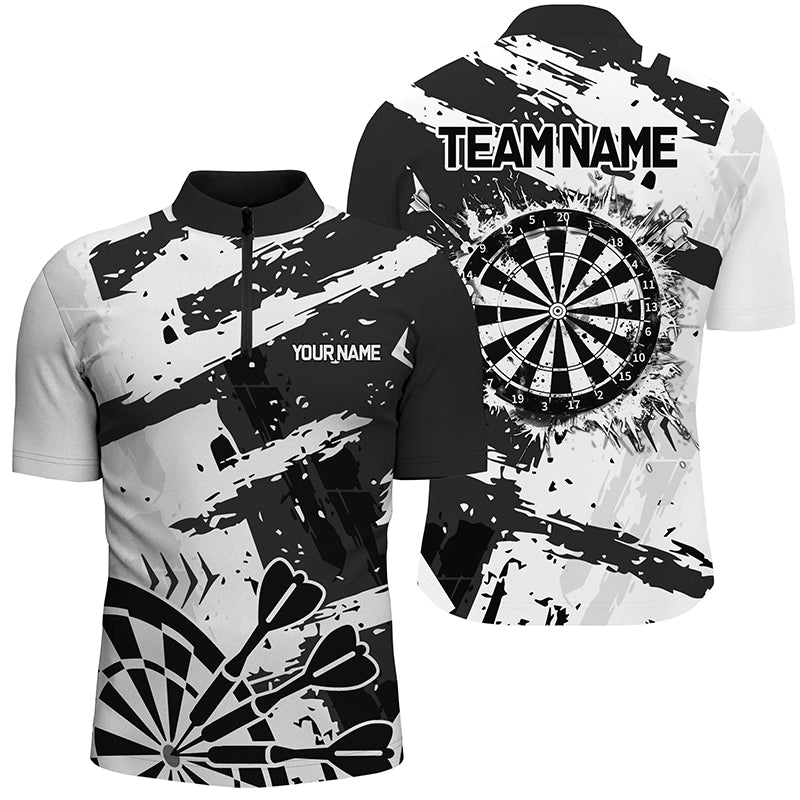 Grunge Black White Darts Polo & Quarter- Zip Custom Darts Shirts For Men Darts Team Jerseys TDM2454