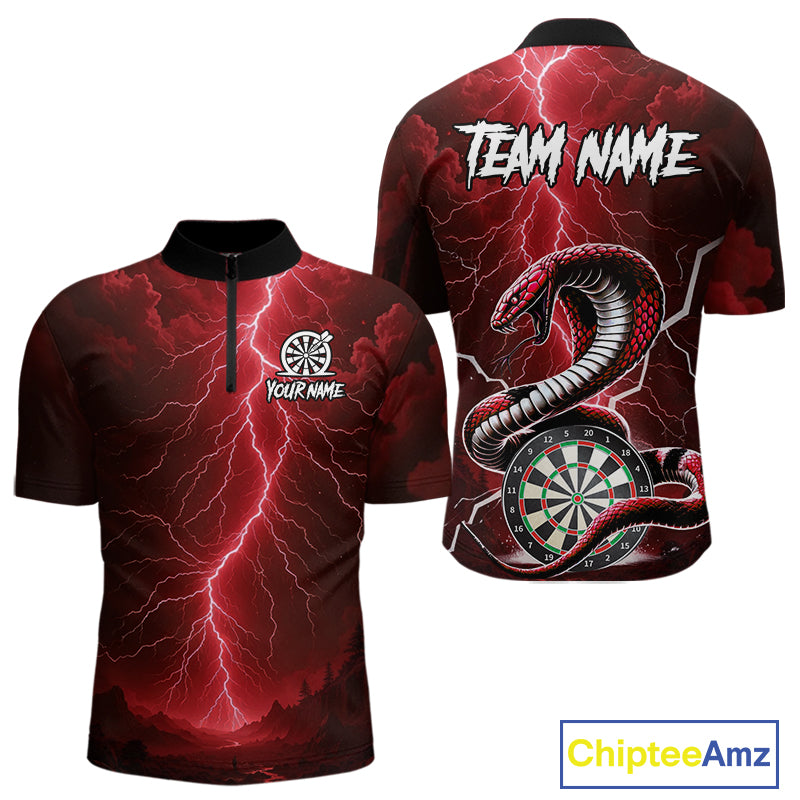 Red Lightning Thunder Cobra Darts Shirt For Men Custom Darts League Team Jersey Polo & 1/4 Zip TDM4894