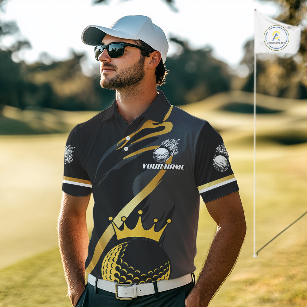 Black and Gold Crown Golf ball Men's golf polo shirts custom team golf tops for men NQS10757