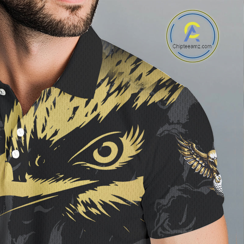 Black and Gold Eagle golf polo shirts for men custom men's golf team shirts, personalized golf gifts NQS10208