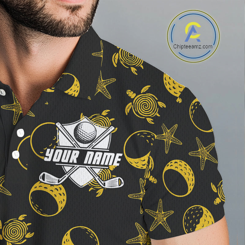 Black and Gold golf pattern Men golf polo shirts Custom best mens golf wear, personalized golf gifts NQS10130