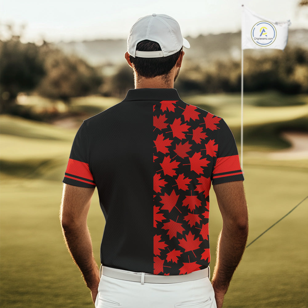 Black and Red maple leaf pattern Men golf polo shirts Custom Canadian Flag patriotic mens golf top NQS10139