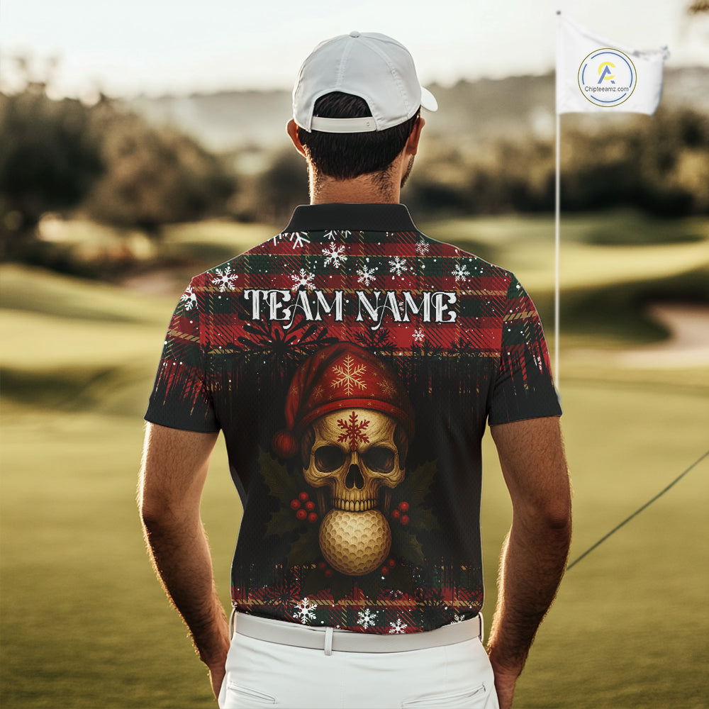 Black and Red Plaid Christmas pattern Skull Mens Polo Shirt Custom Golf outfit For Men, golfing gifts NQS11058