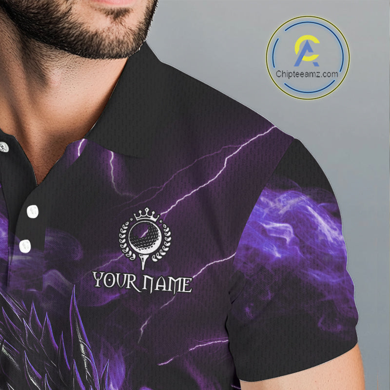 Purple Flame Dragon Golf polo shirt For Men Custom Dragon team mens golf outfits, gift for golf lover NQS10792