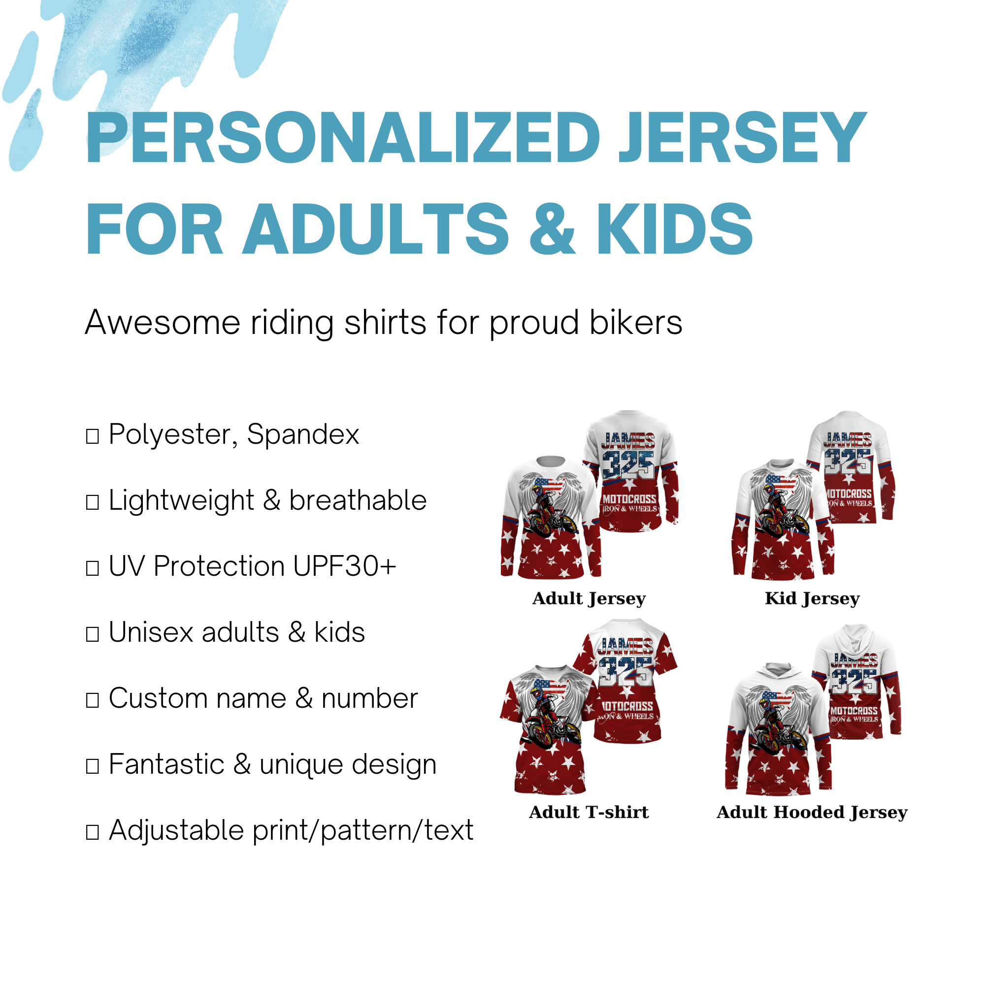 American Motocross Jersey UPF30+ Personalized Patriotic MX Off-Road Adult&Kid Dirt Bike Jersey 4th July| NMS754
