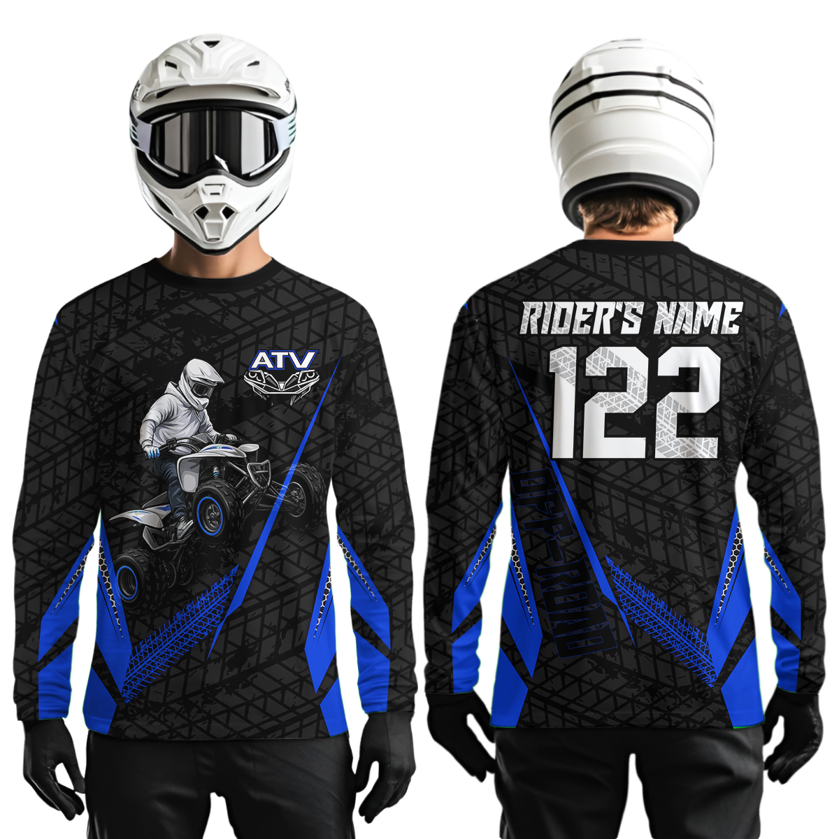 Personalized ATV Motocross Jersey For Adult & Kids UPF30+ Blue Quad Bike Shirt Off-Road ATV MX Racing NHN013