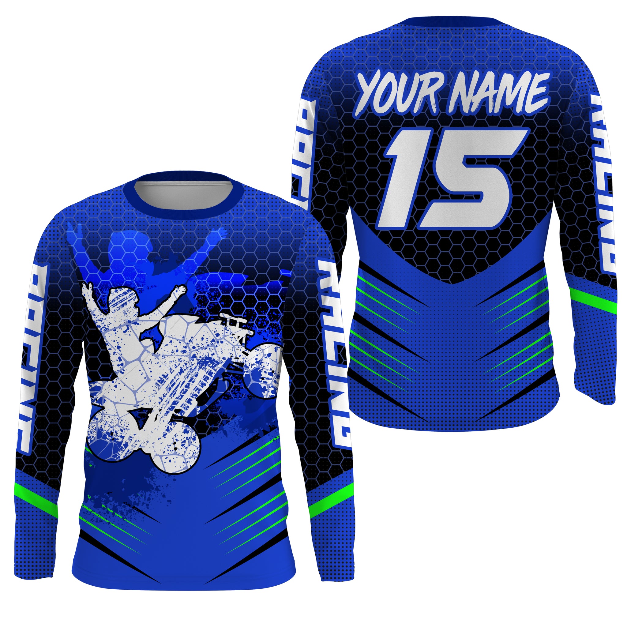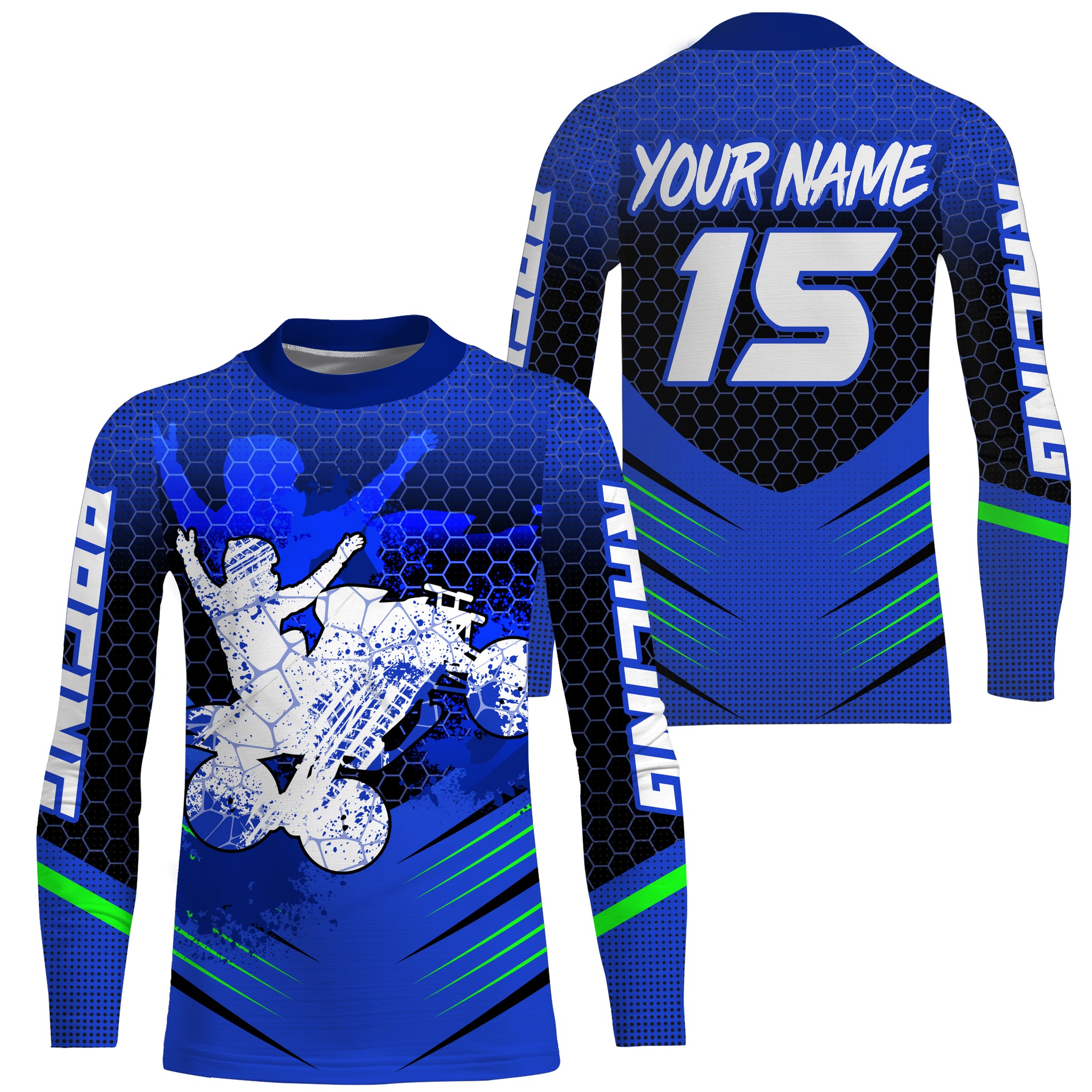 Blue ATV Motocross Jersey UPF30+ Custom Adult Youth Quad Bike Off-Road Jersey MX Shirt Freestyle PDT646