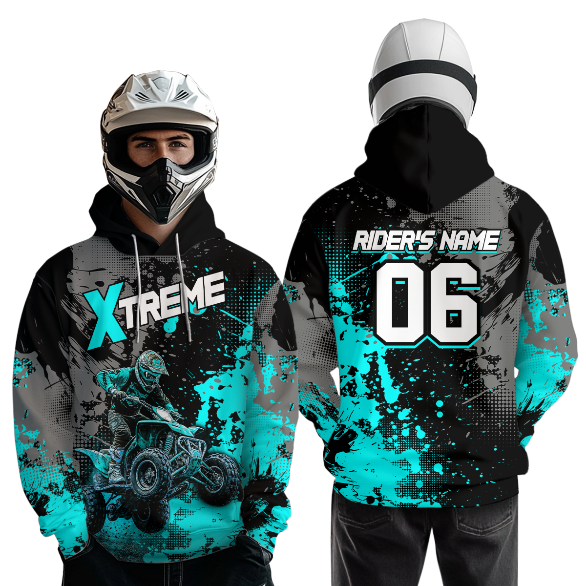 Custom ATV Motocross Hoodie Turquoise Upf30+ Extreme Quad Bike Off-Road Jersey Men Kid Mx Riding Hoodied NHN010