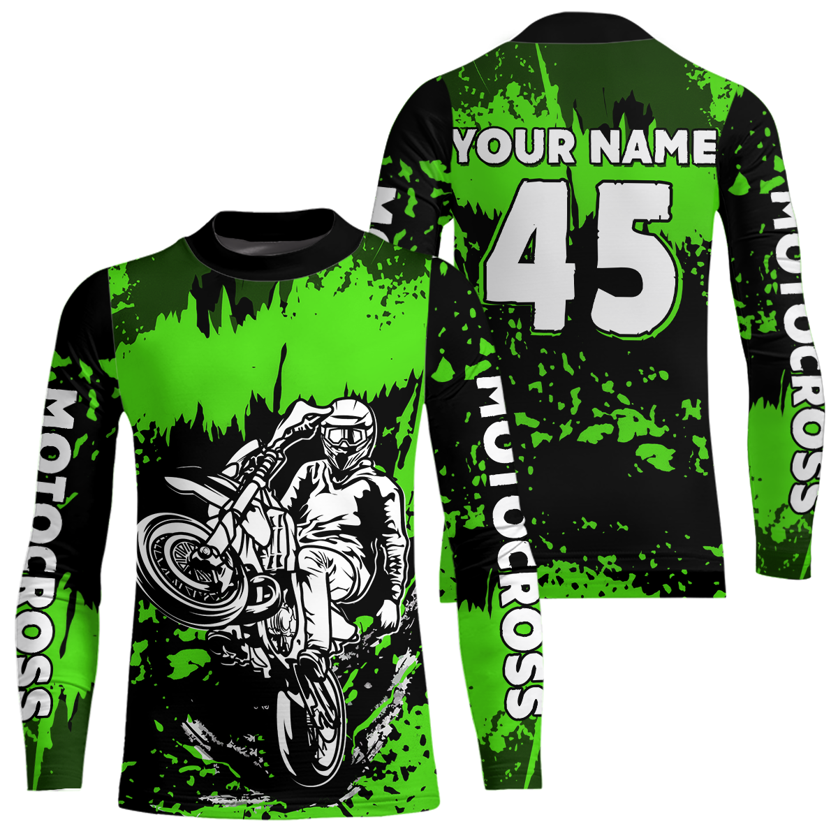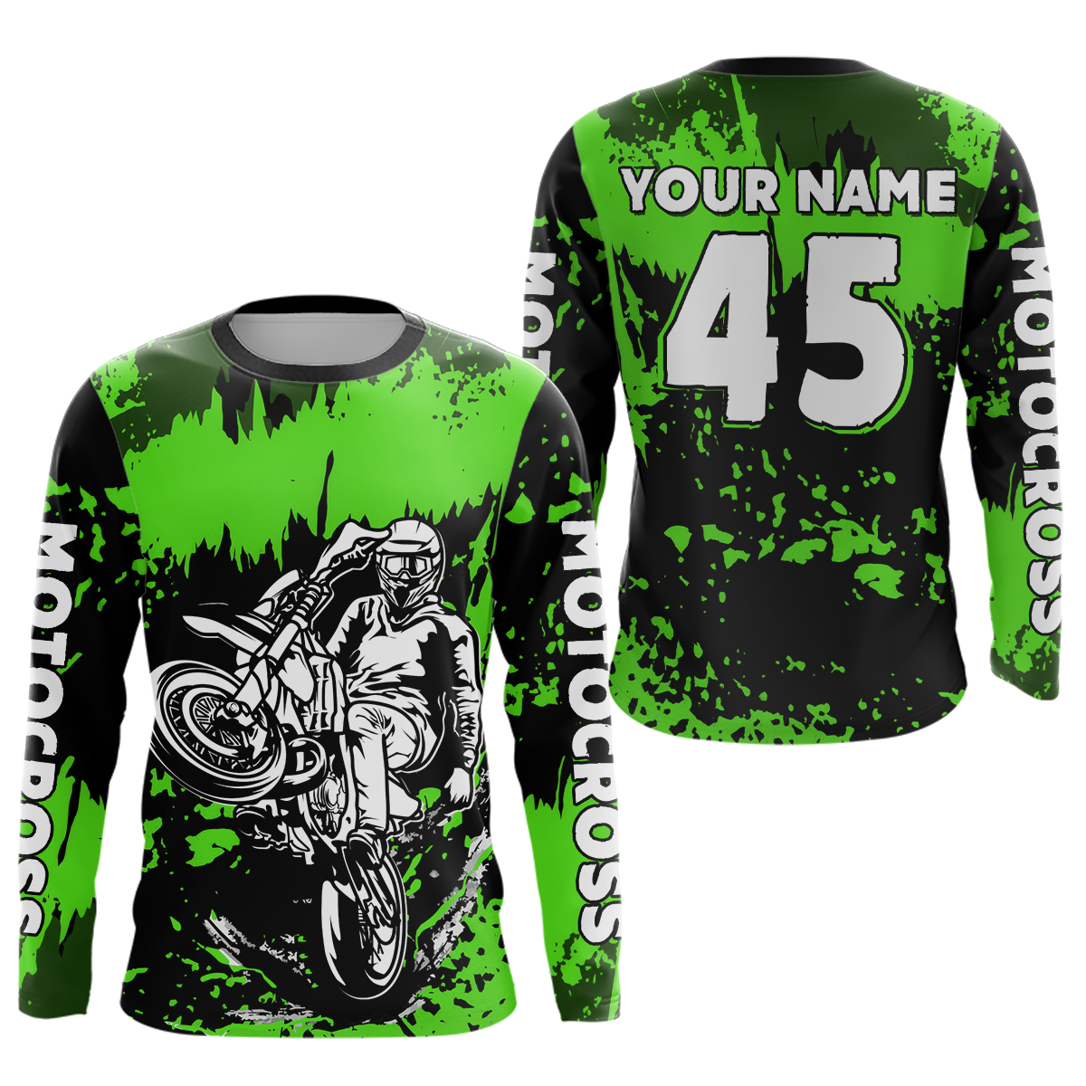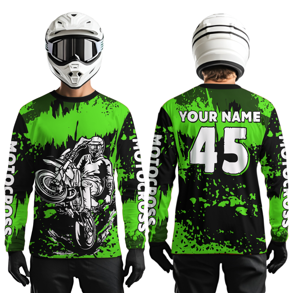 Custom Green Motocross Jersey for Men Women Kids UPF30+ MX Motorcycle Racing DNT22