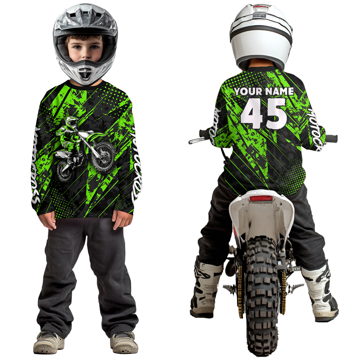 • PERSONALIZED MOTOCROSS JERSEY: This super cool long-sleeved shirt is exactly what all bikers are looking for. Add your name/number to make it a unique one that bears your own imprints.