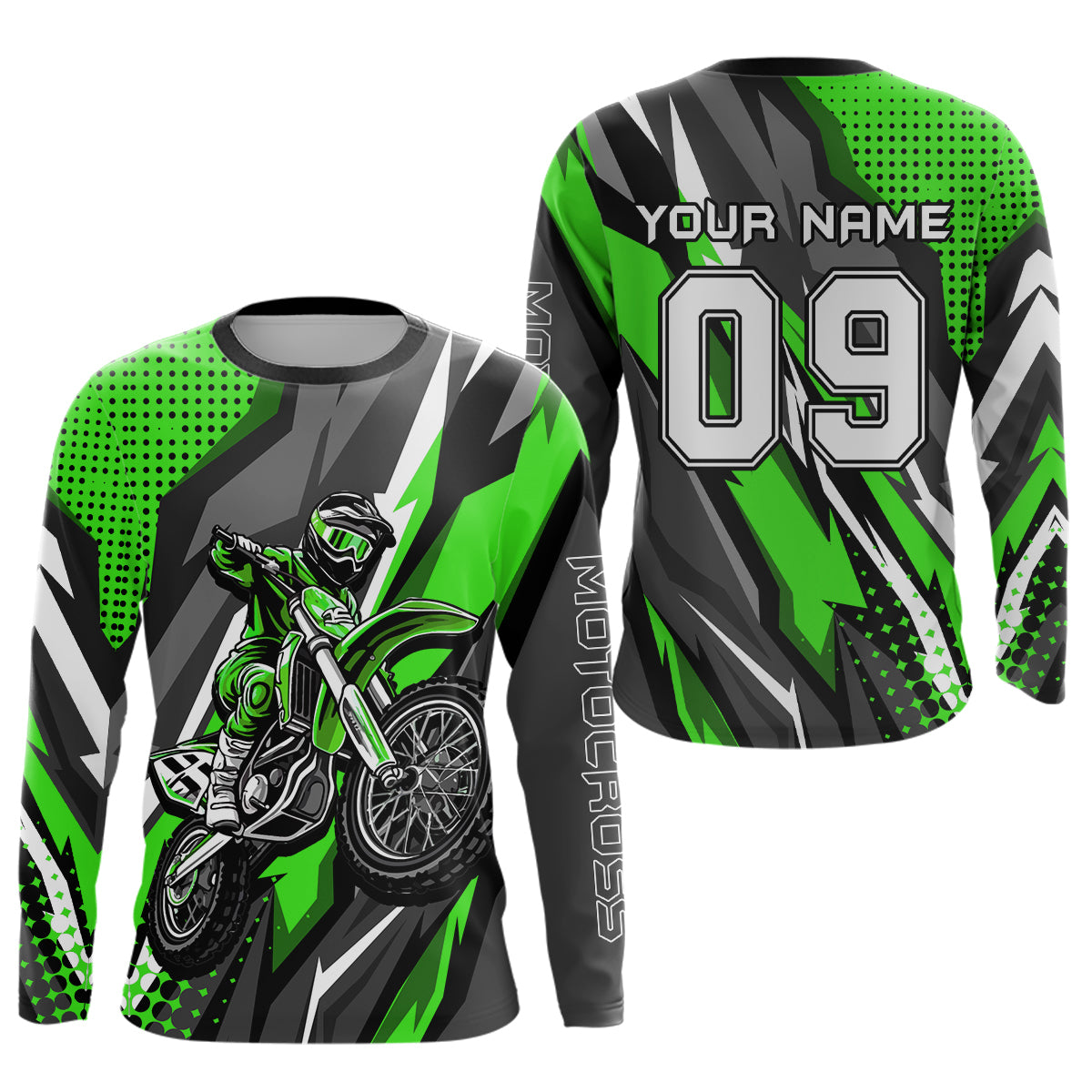 • PERSONALIZED MOTOCROSS JERSEY: This super cool long-sleeved shirt is exactly what all bikers are looking for. Add your name/number to make it a unique one that bears your own imprints.