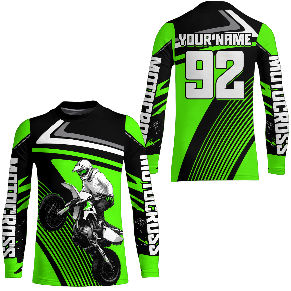 Custom Green Youth Motocross Racing Jersey UPF30+ Motorcycle Shirt Dirt Bike Jersey Men Women DNT86