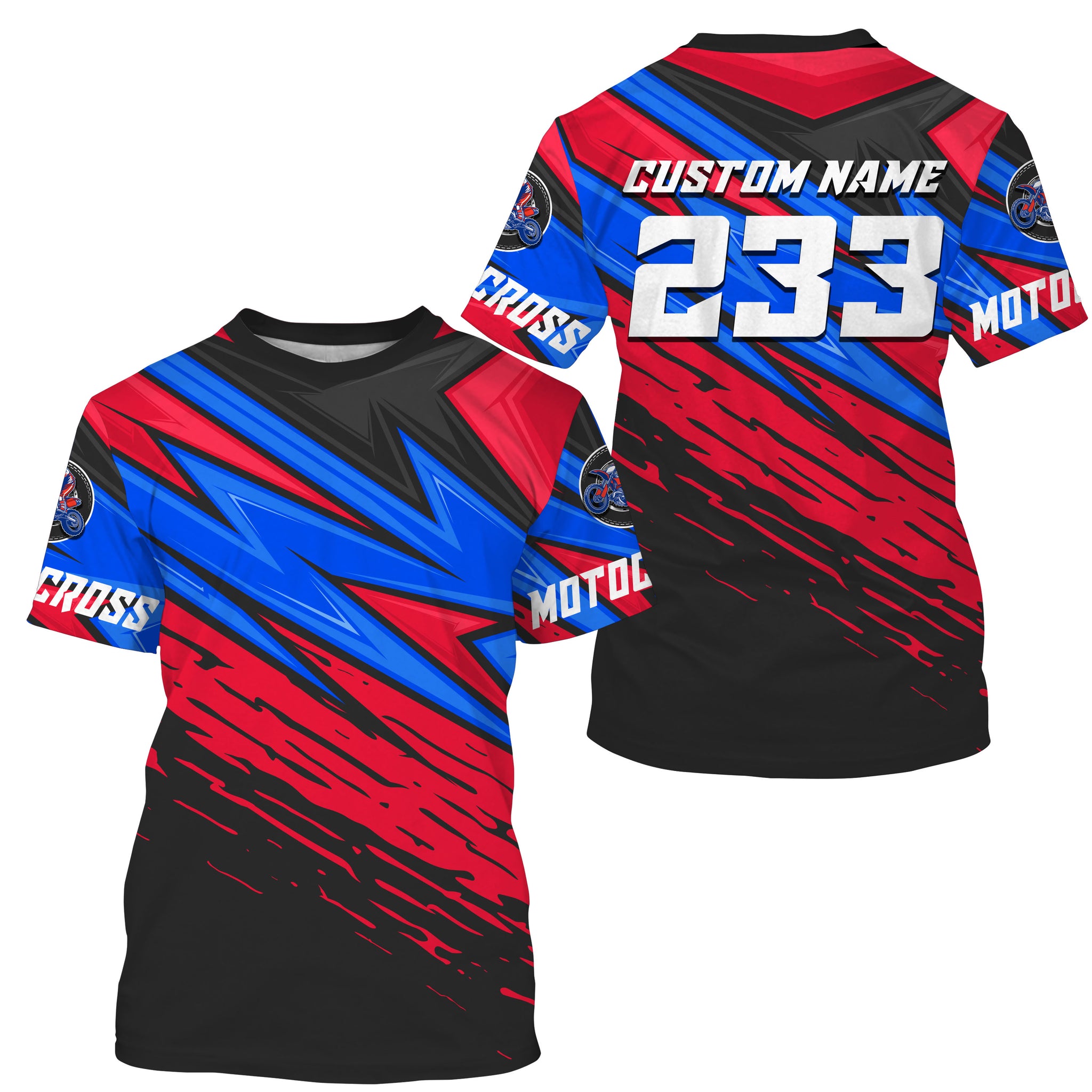 Custom Motocross jersey UPF30+ kid&adult blue red dirt bike racing off-road motorcycle racewear NMS945