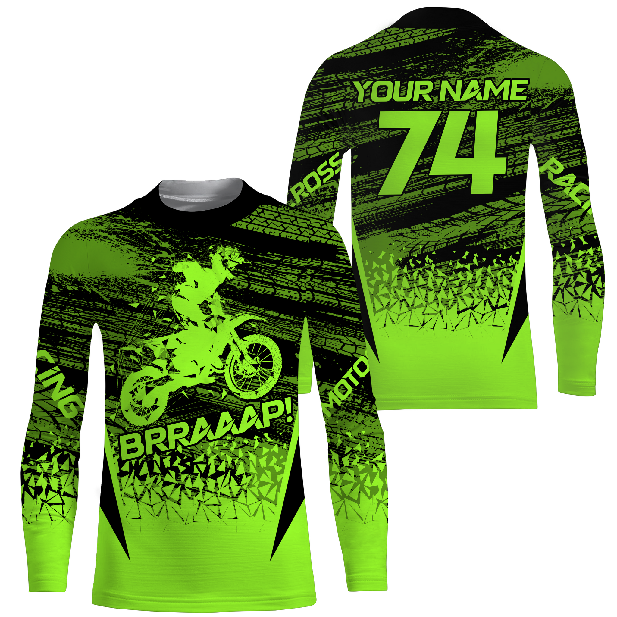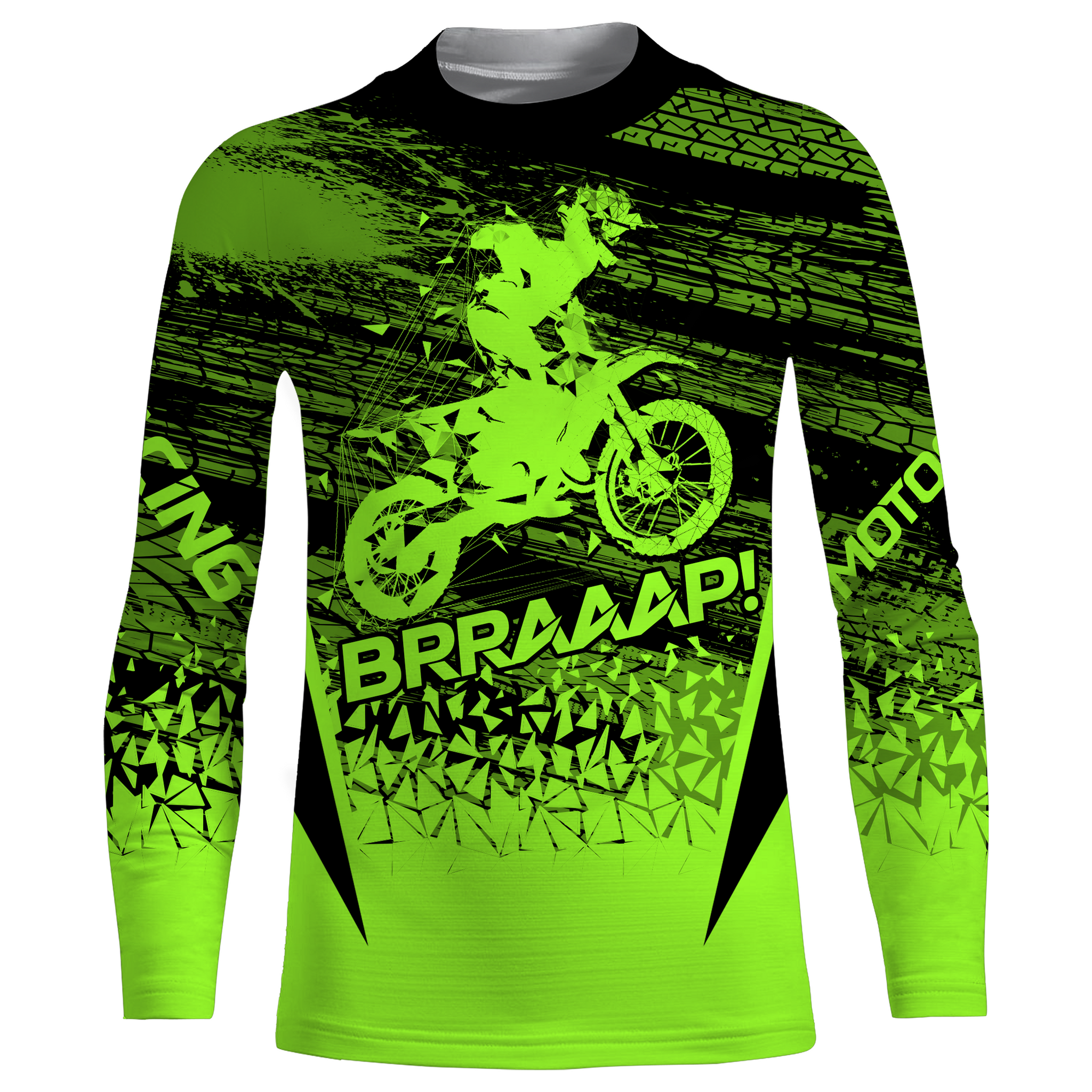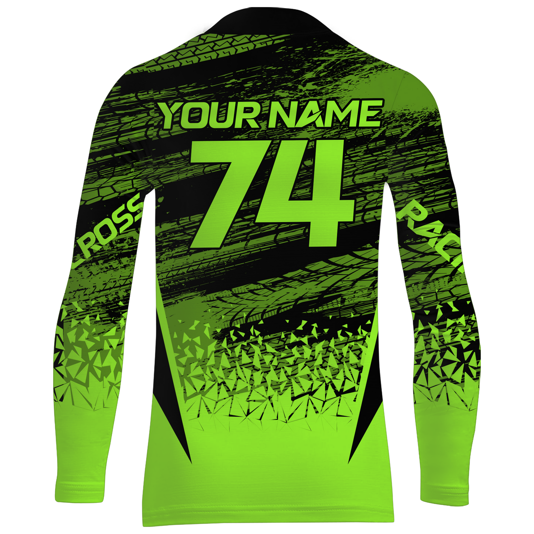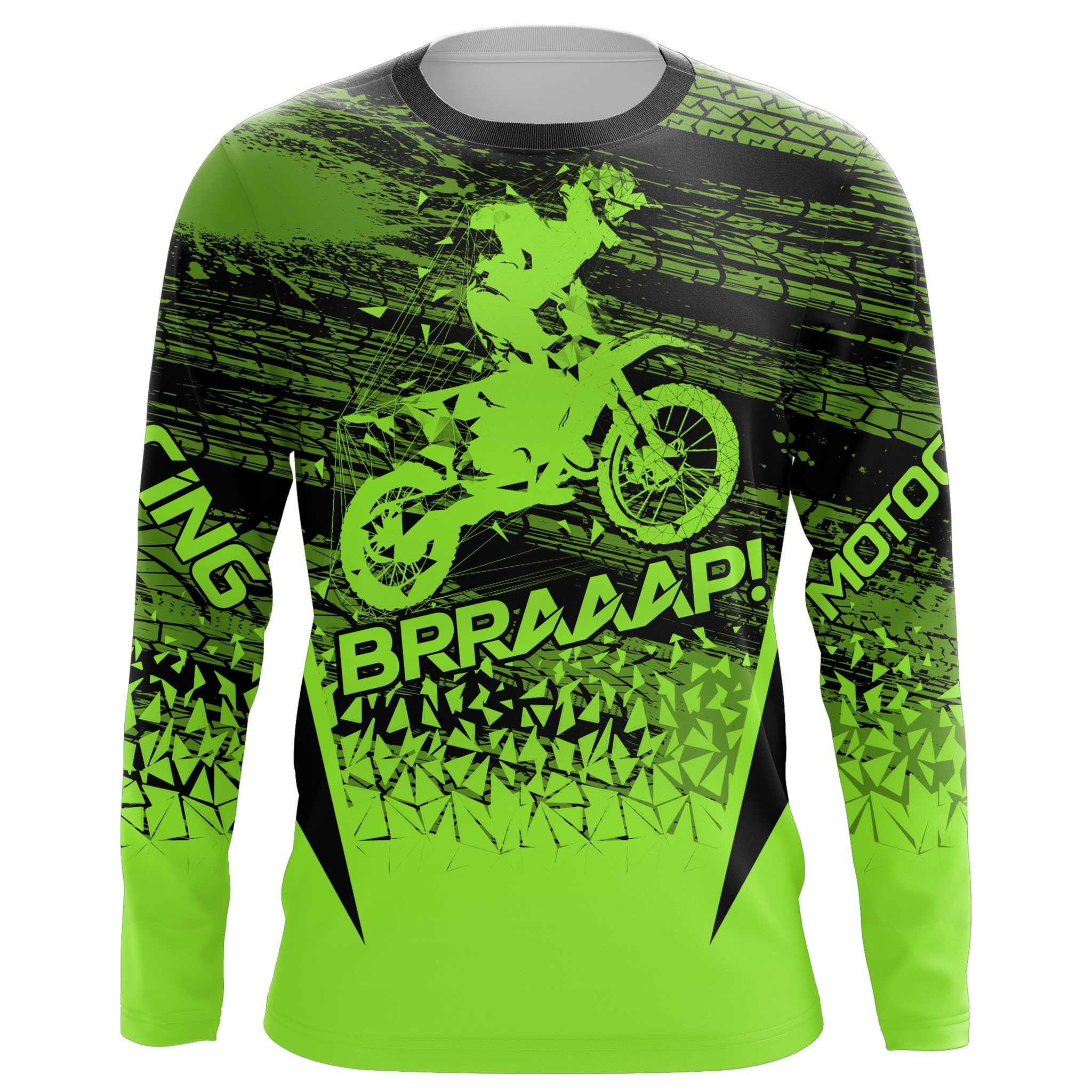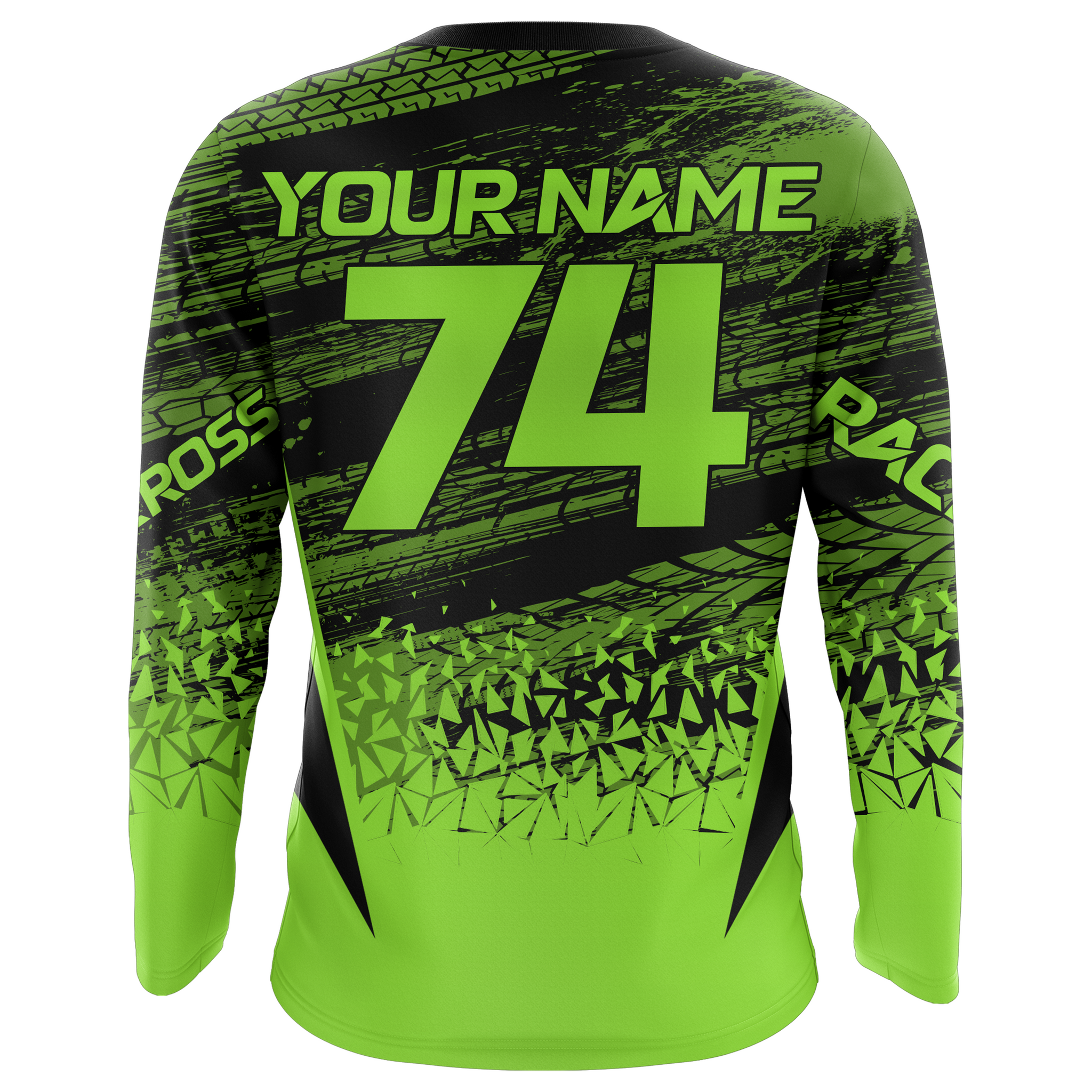 Custom Motocross Racing Jersey UPF30+ Green Motorcycle Dirt Bike Jersey Off-Road Youth & Adult XM129