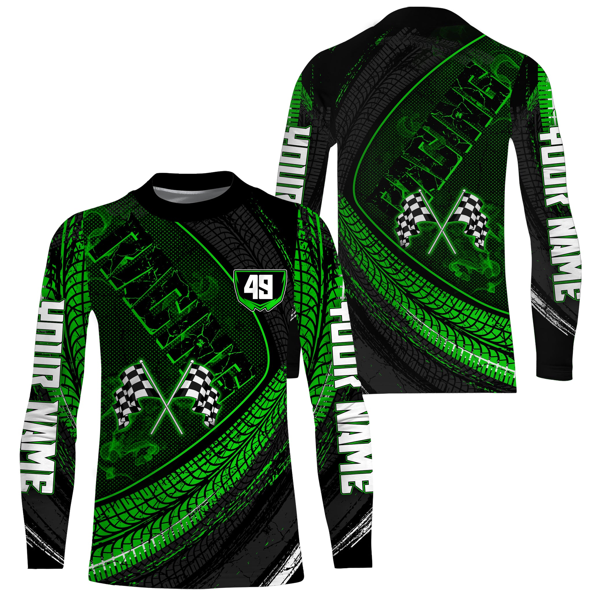 Dirtbike Racing Jersey UPF30+ Personalized Motocross Off-road Riders Tire Track Green Riding Jersey| NMS607