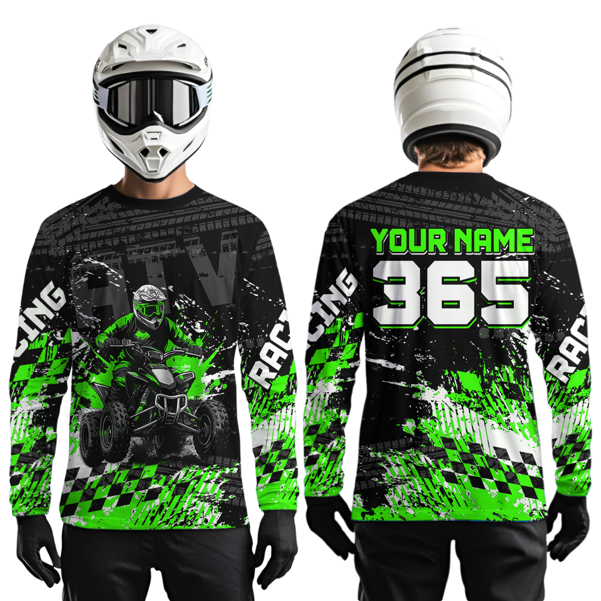 Custom Green ATV Motocross Jersey Upf30+ Quad Bike Shirt Extreme Racing Adult Youth Off-Road Quad Shirt NHN009