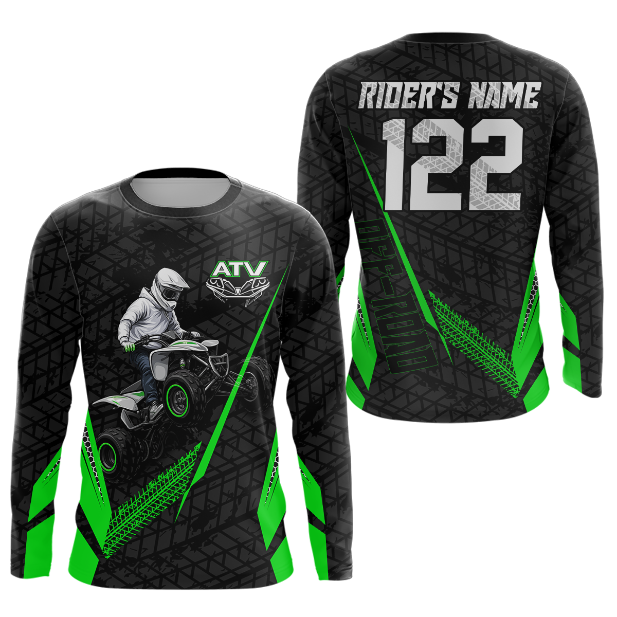 Personalized ATV Motocross Jersey For Adult & Kids UPF30+ Green Quad Bike Shirt Off-Road ATV MX Racing NHN013