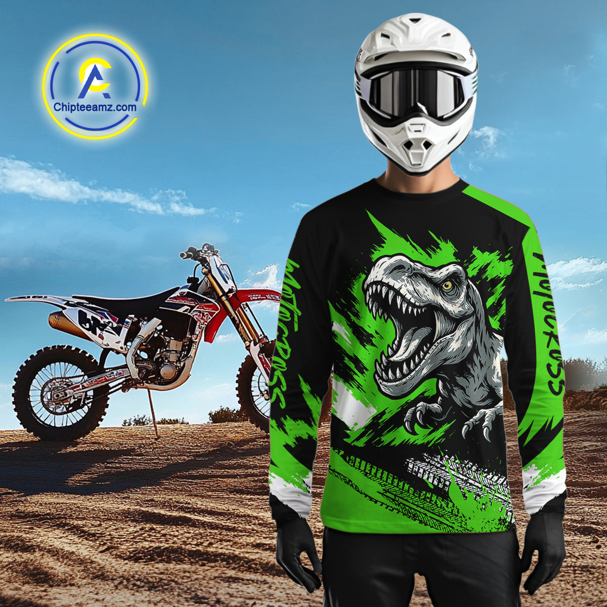 Green Dinosaur Motocross Racing Jersey UPF30+ MX Racing Dirt Bike Jersey Kid Men Women DNT05