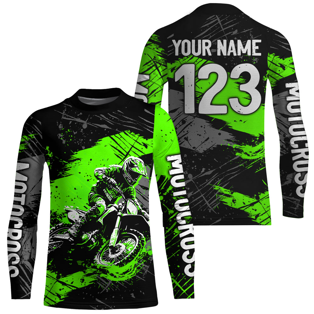 Green Youth Motocross Jersey Custom Dirt Bike Racing Shirts for Kid Men Women UPF30+ DNT20