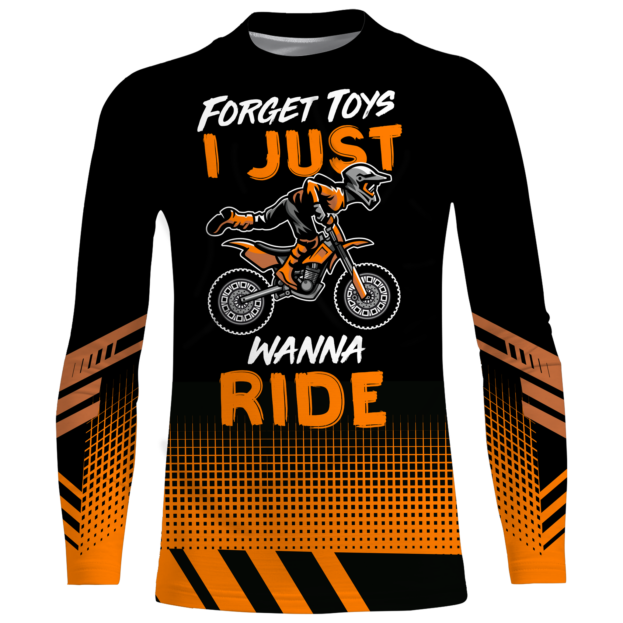 Kid Custom Motocross Jersey Forget Toys I Just Wanna Ride Dirt Bike UPF30+ Youth Racing Motorcycle NMS954