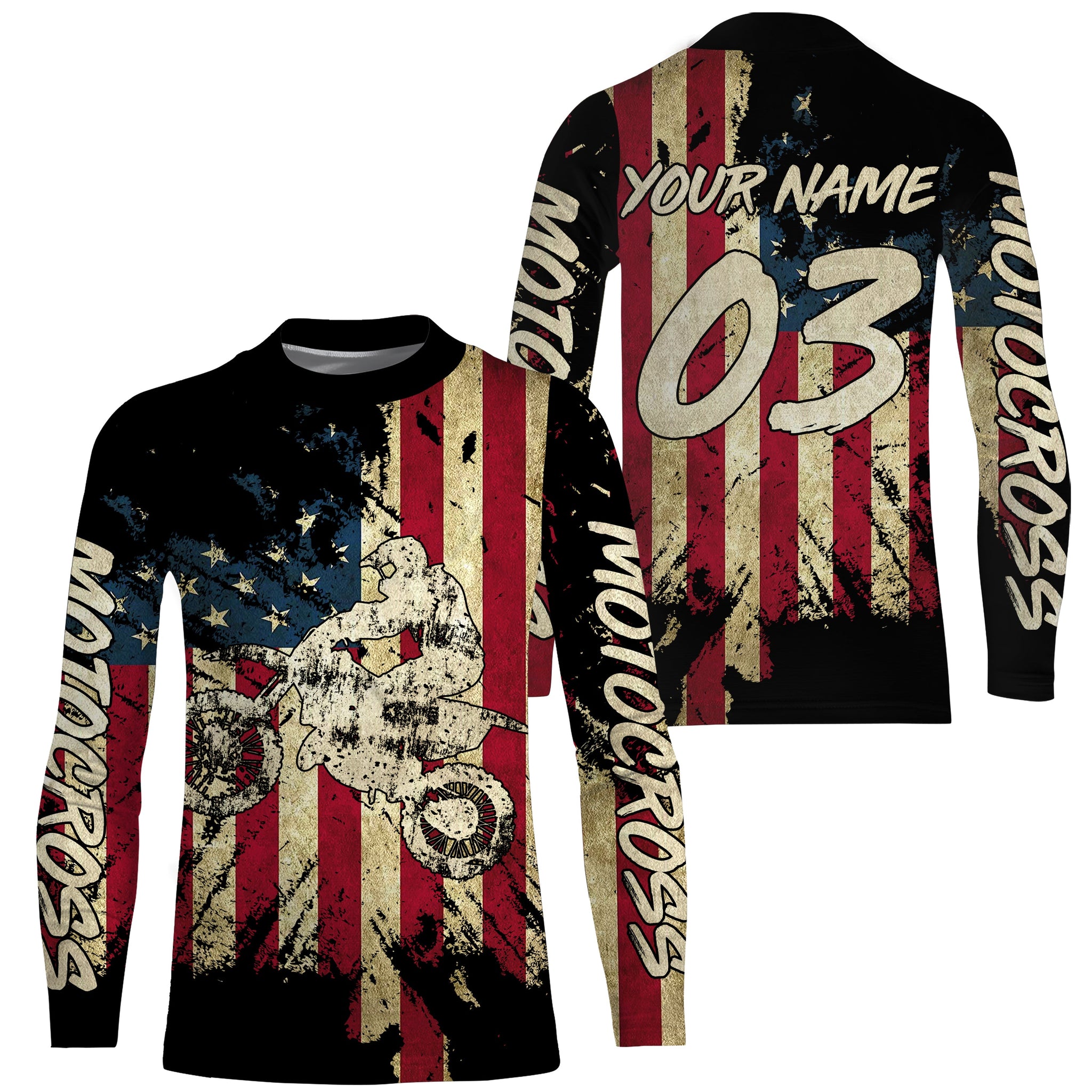 Motocross Racing Jersey UPF30+ Anti UV Personalized American Riding Shirt Patriotic Motorcycle Rider NMS483