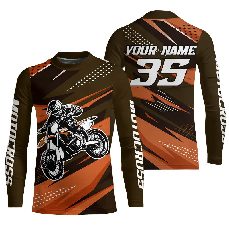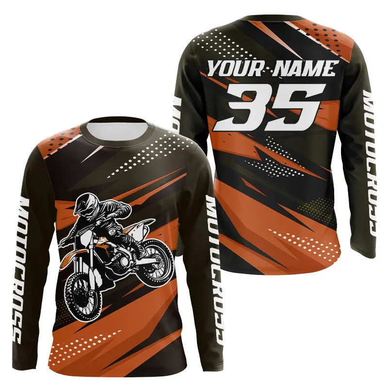 • PERSONALIZED MOTOCROSS JERSEY: This super cool long-sleeved shirt is exactly what all bikers are looking for. Add your name/number to make it a unique one that bears your own imprints.