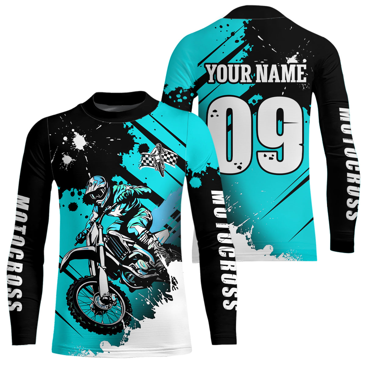 Personalized Turquoise Dirt Bike Jersey Motocross Jersey Men Women Kid Upf30+Youth Racing Jersey DNT76