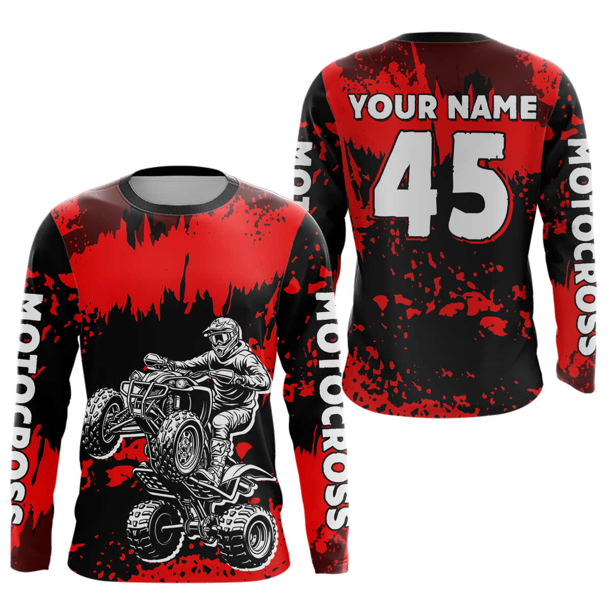 Red ATV Motocross Jersey Kid Adult Custom Quad Bike Jersey Off-Road Shirt UPF30+ DNT59