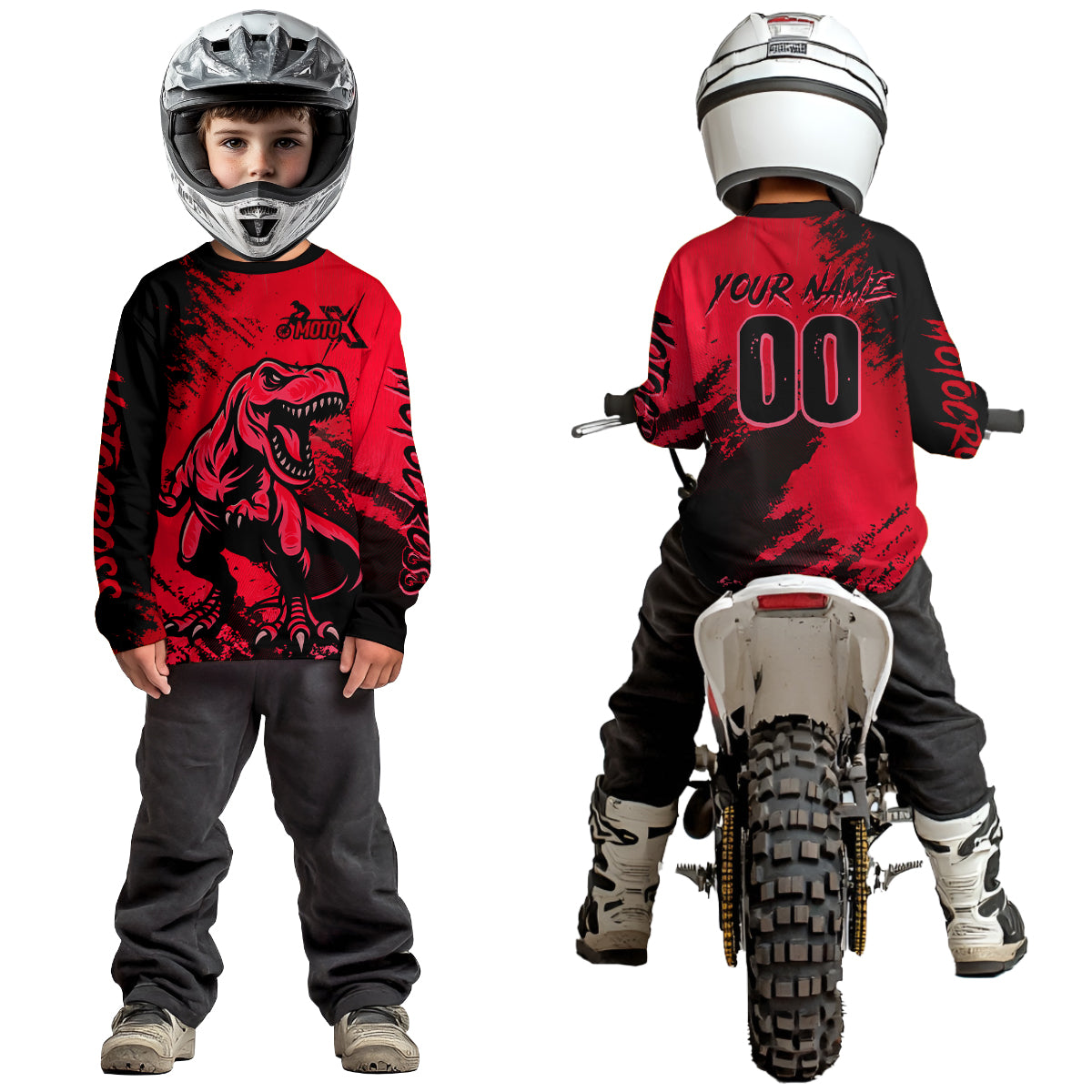 Red Dinosaur Motocross Jersey Dirt Bike Shirts for Men Kid Women Racing Jersey XM417