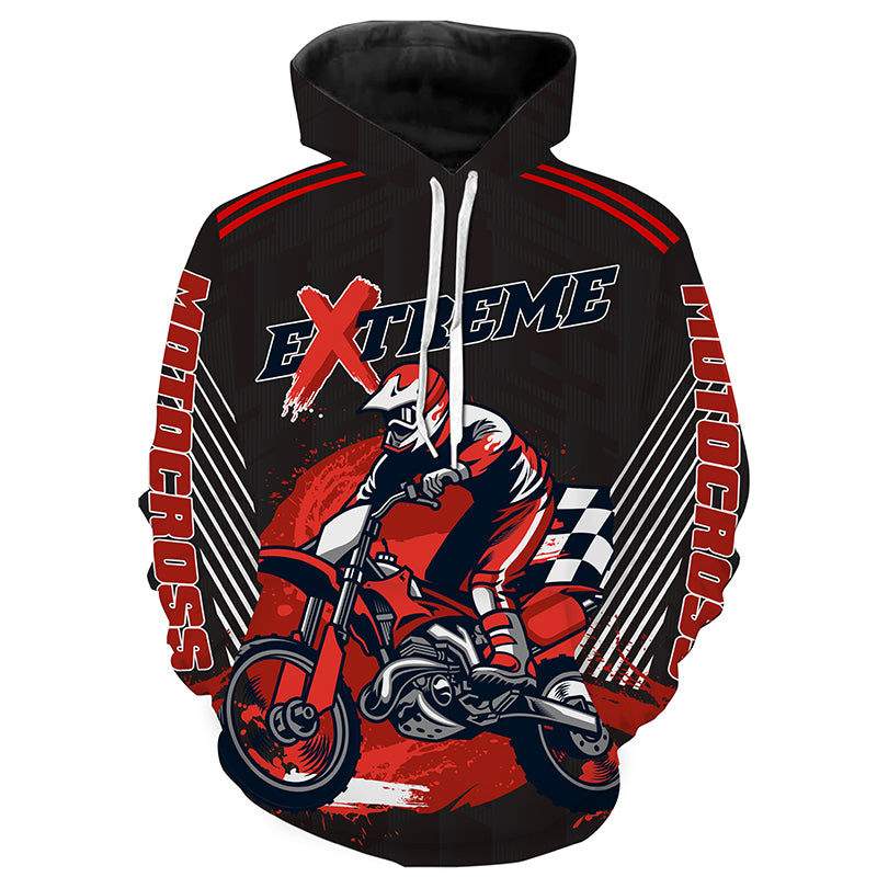 Red Dirt Bike Hoodie Adult UV Custom Motocross Hooded Jersey Extreme Off-Road Motorcycle Hoodie PDT445