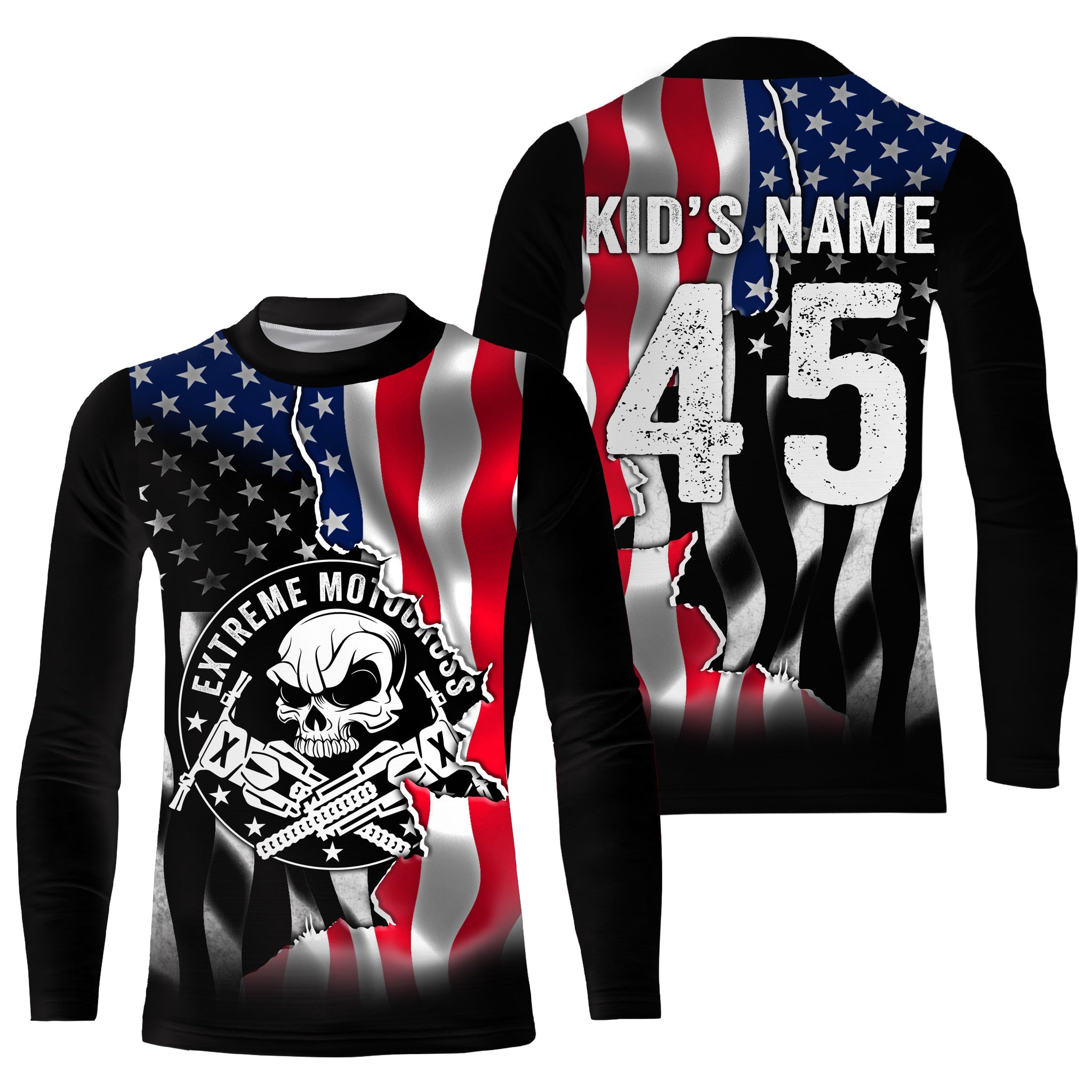 US Flag Extreme Motocross personalized jersey UPF30+ Skull Patriotic motorcycle dirt bike racing NMS1064