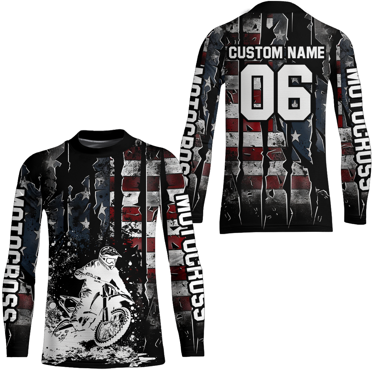 US Flag Motocross Racing Extreme Jersey Kid Men Women UPF30+Youth Motorcycle Shirt DNT88