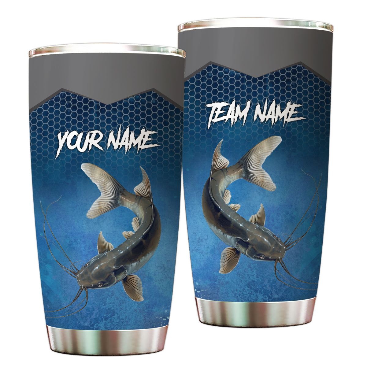 1PC Blue camo Catfish Fishing Customize Stainless Steel Tumbler Cup, Personalized fishing gift NQS9876