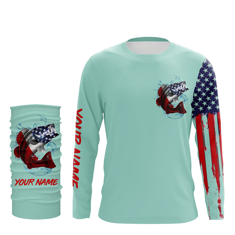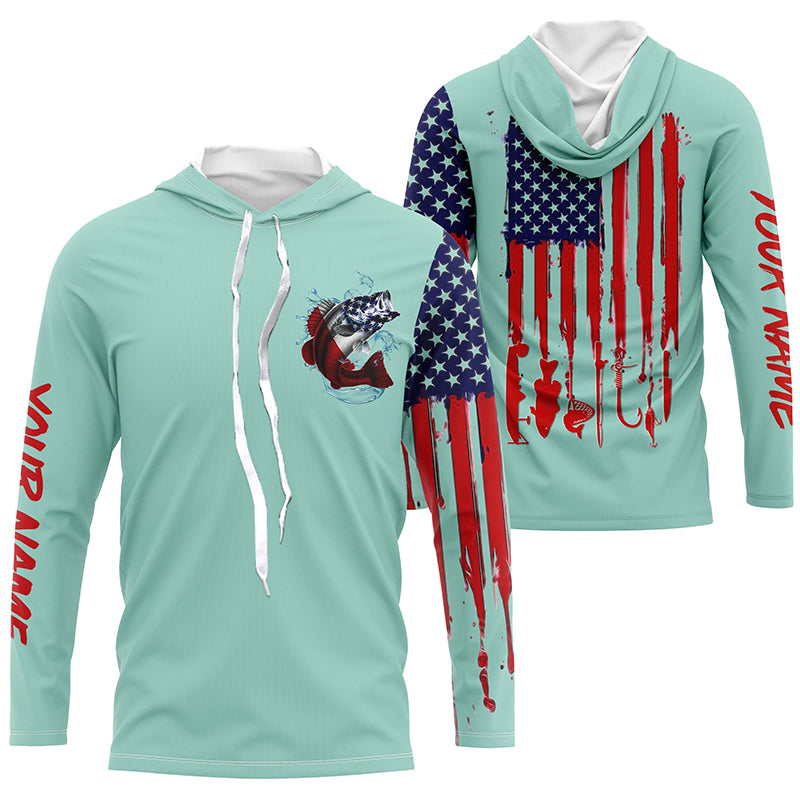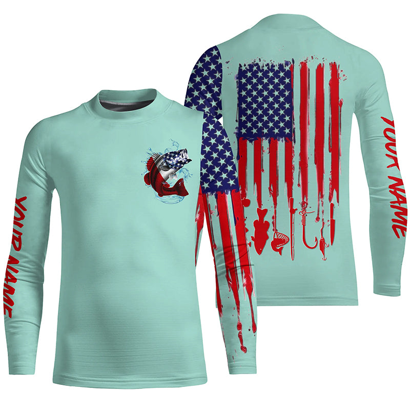 American flag Largemouth Bass fishing personalized patriotic UV Protection Fishing Shirt | Light Green NQS5820