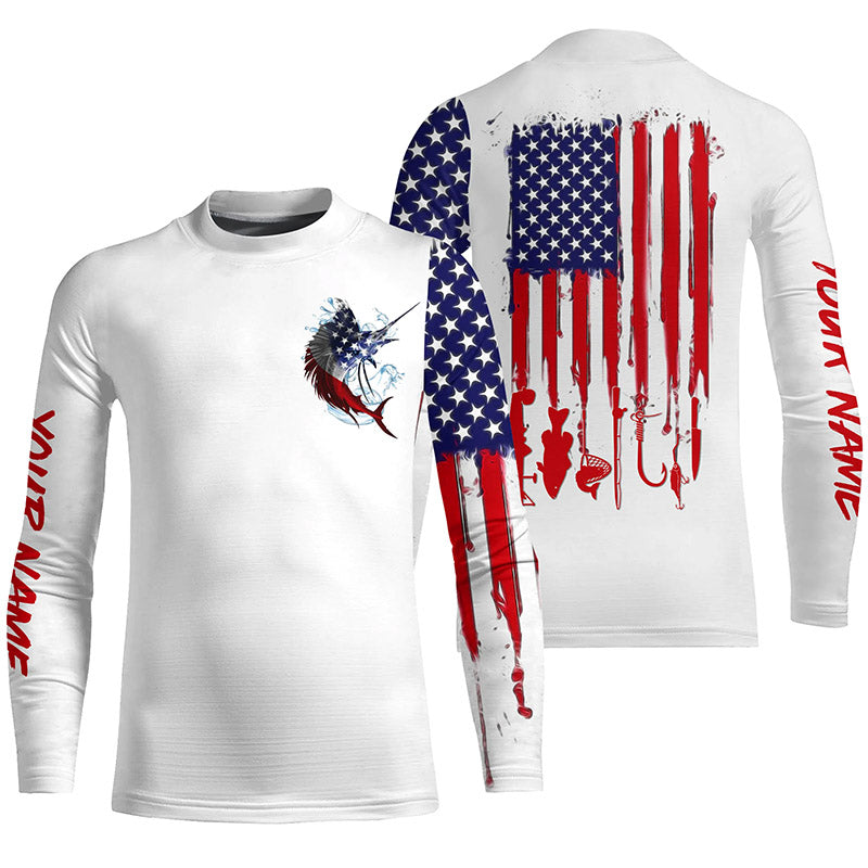 American flag Sailfish fishing personalized patriotic UV Protection Sailfish Fishing Shirts for men NQS5742