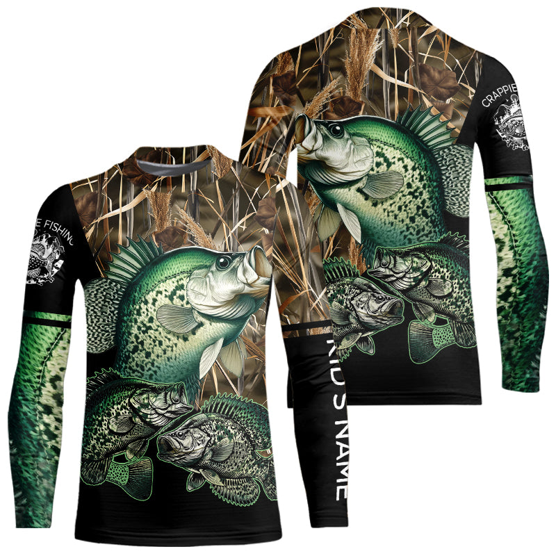Crappie fishing green scales camo personalized custom name sun protection long sleeve fishing shirts NQS3728