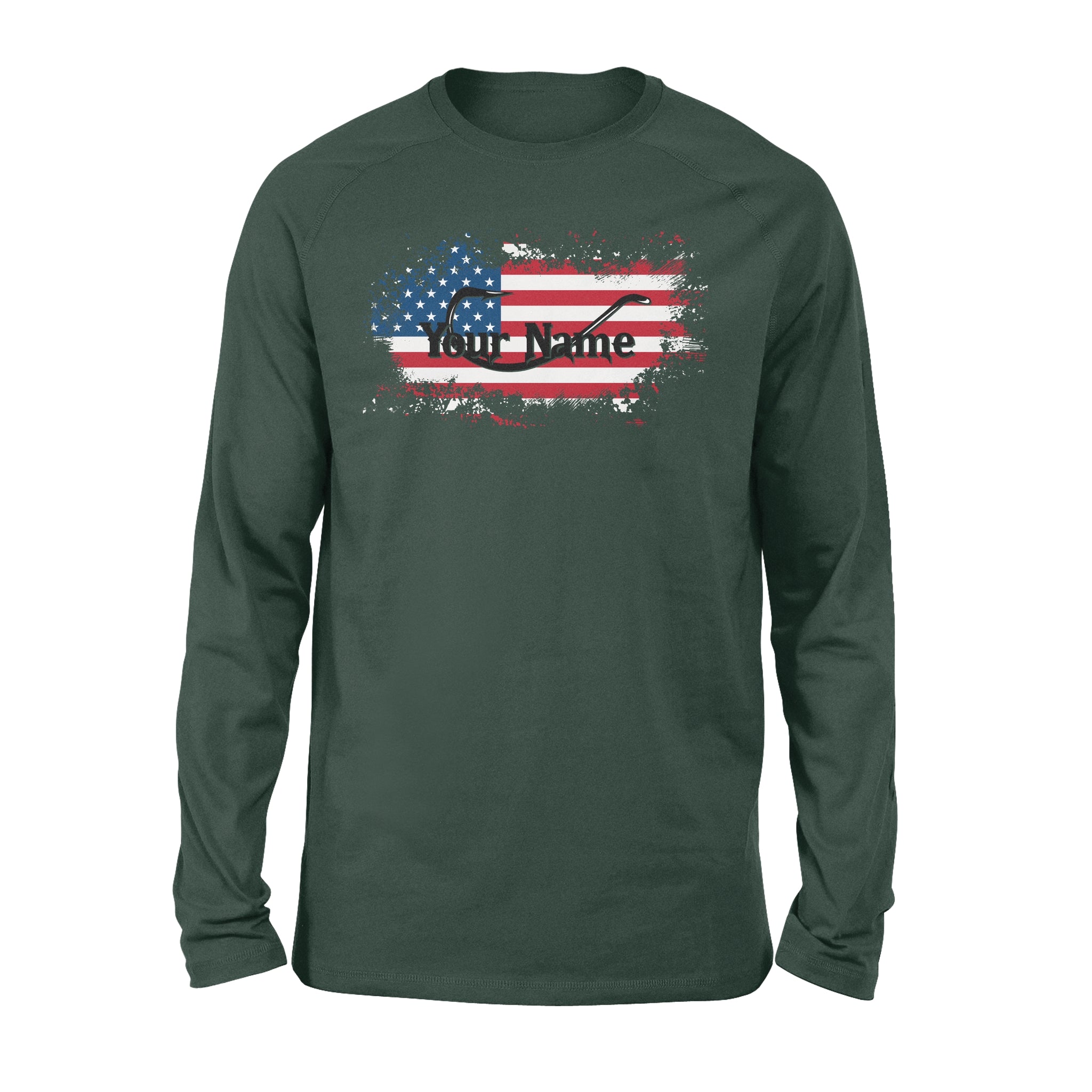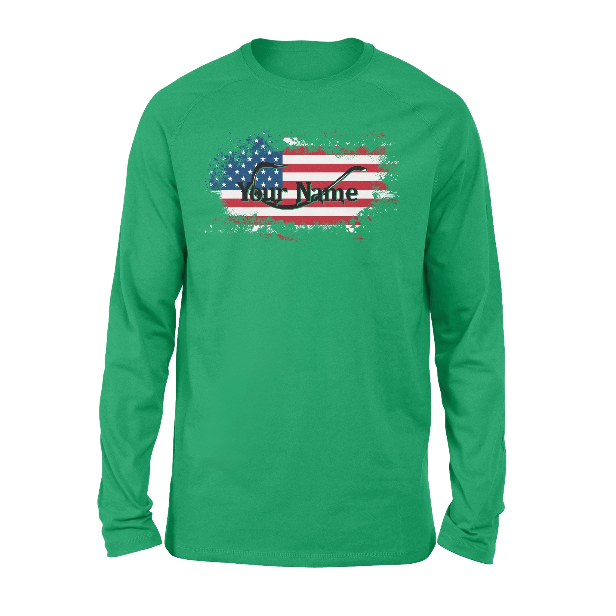 Custom name American Flag Fish Hook fishing Long Sleeve, personalized fishing apparel gift for Fishing lovers- NQS1198