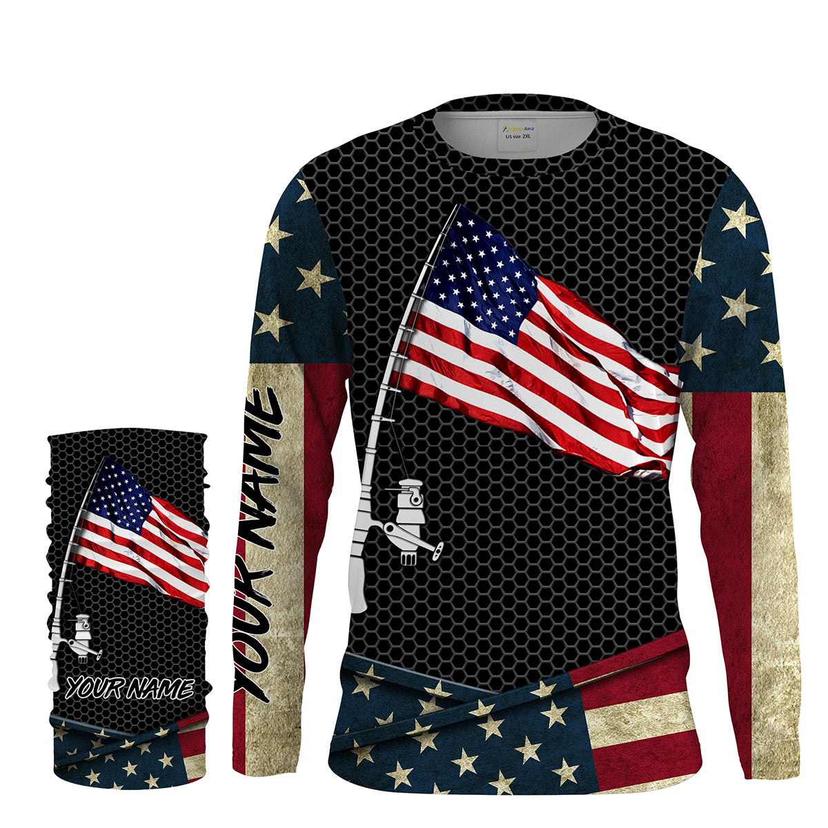 Fishing shirt American flag fishing rod Custom Name Sun protection Shirt Personalized fishing gifts ideas FSD1798