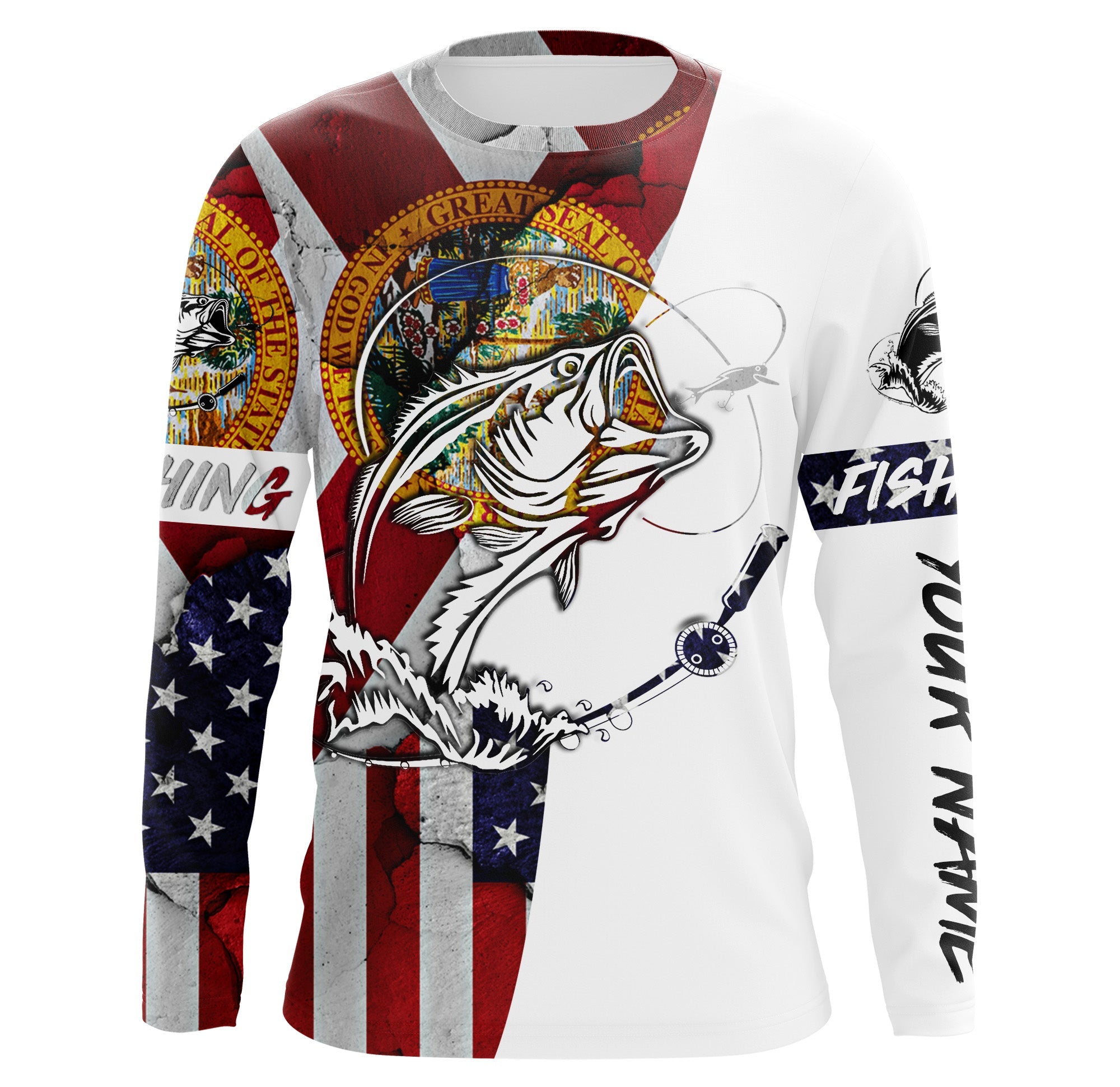 Florida and American flag Bass Fishing Men's Performance Fishing Shirts, Personalized gifts FSD3244
