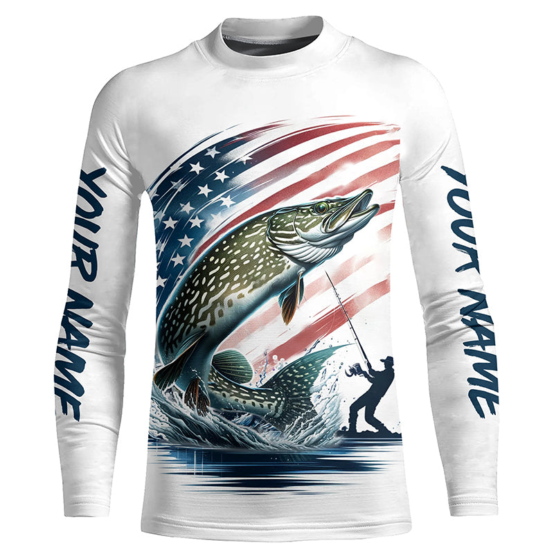Personalized American Flag Pike Long Sleeve Fishing Shirts, Patriotic Pike Fishing Jerseys IPHW6047