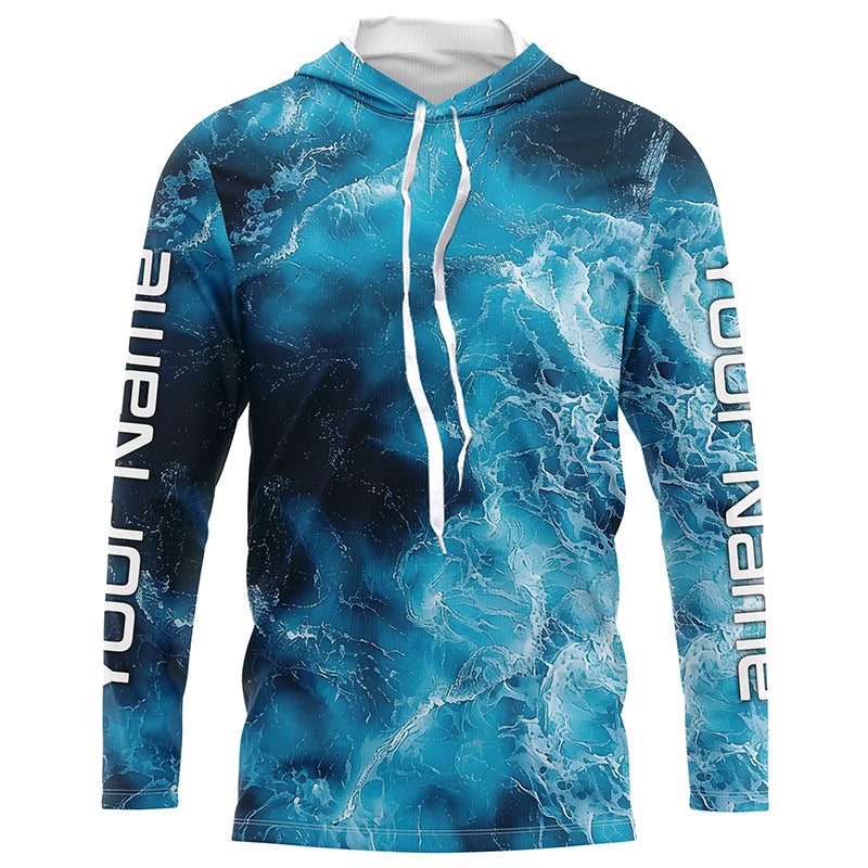 Blue Sea Waves Ocean Camo Long Sleeve Uv Protection Fishing Shirts, Personalized Fishing Jersey IPHW7192