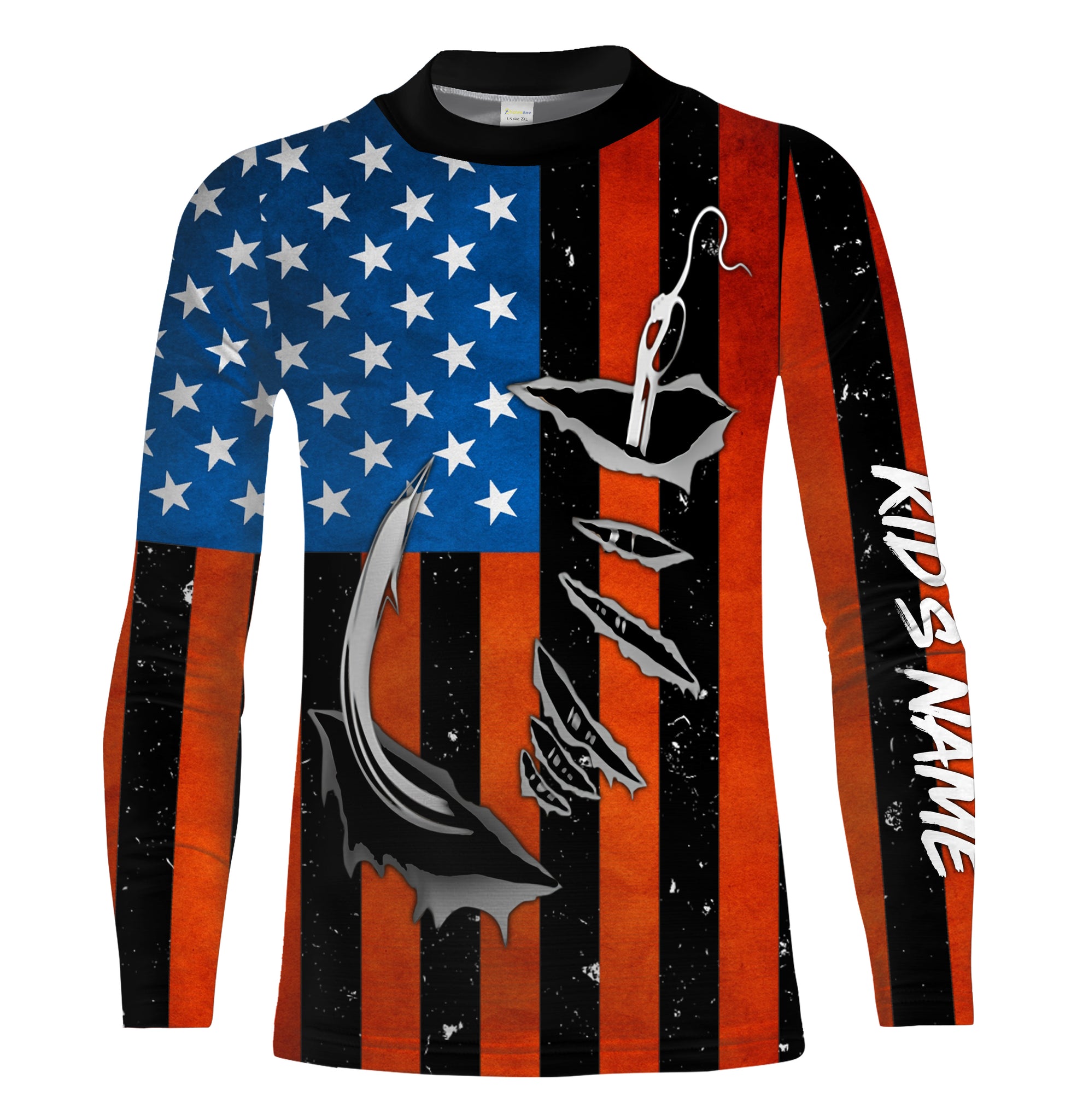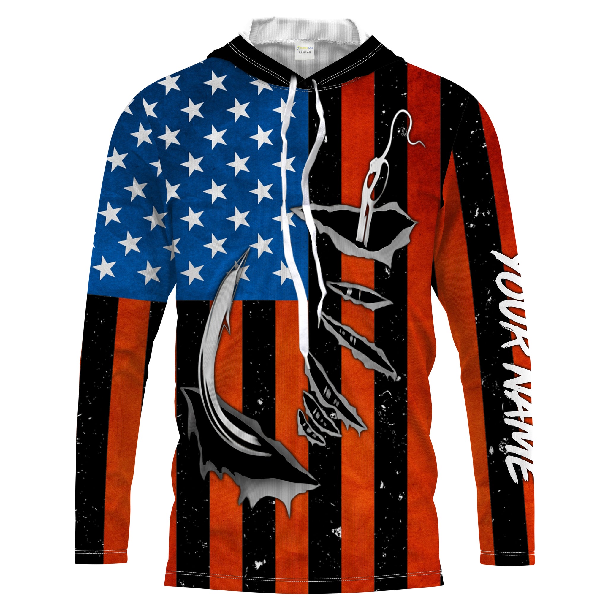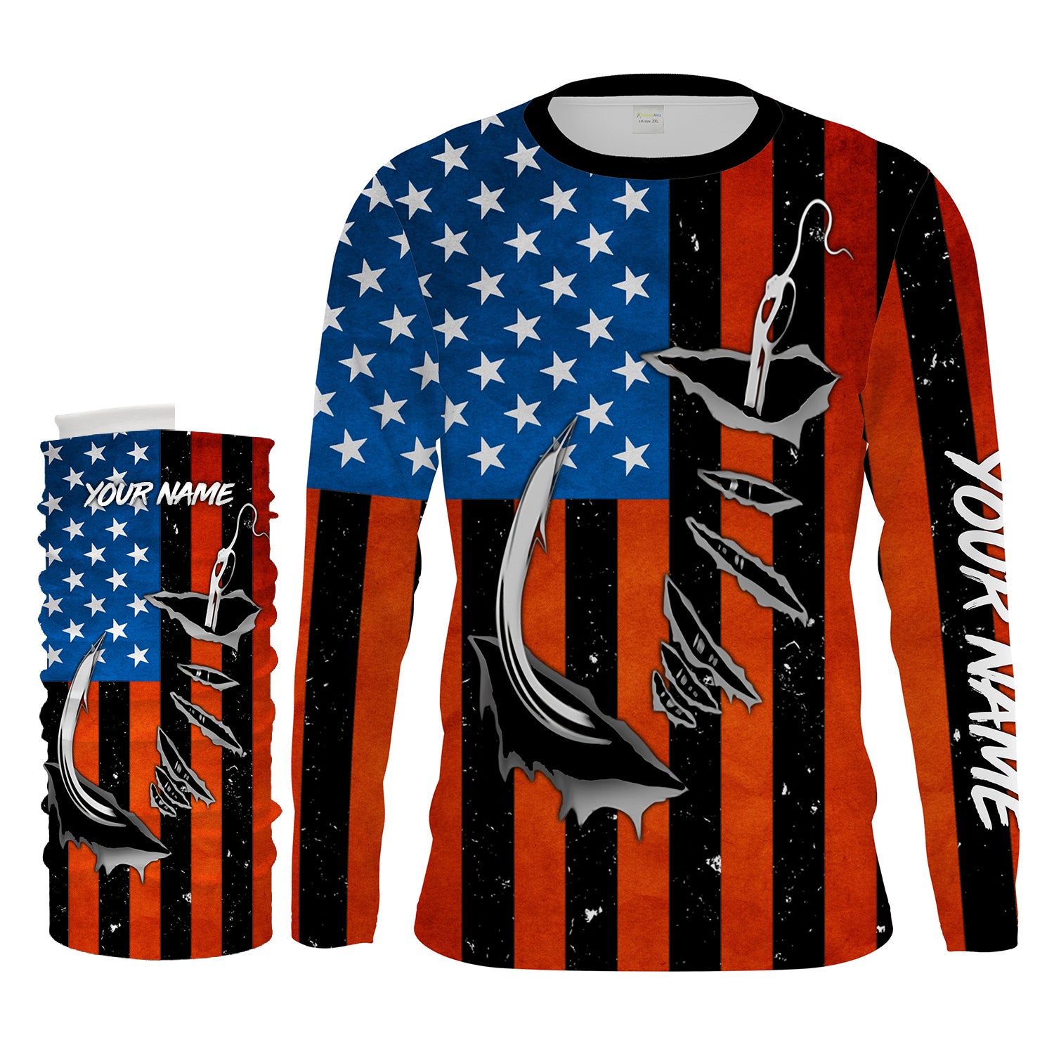 Personalized American Flag Fishing Shirts, Patriotic Fish hook Long sleeve performance Fishing Shirts - IPHW1542