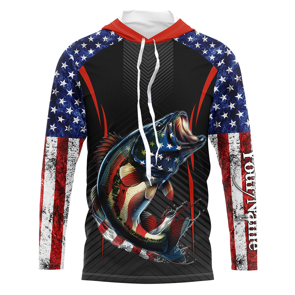 Personalized Bass Fishing American Flag UV Protection Long Sleeve Performance Fishing Shirts TTN119