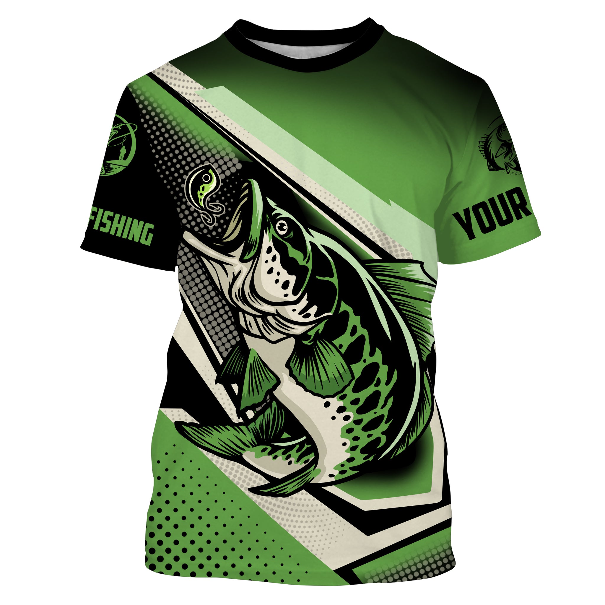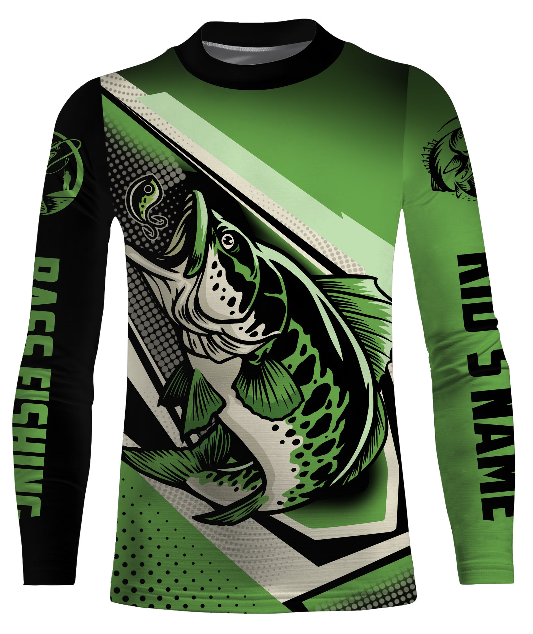 Personalized Bass Halftone fishing UV protection quick dry Customize name long sleeves fishing shirts UPF 30+ TMTS003