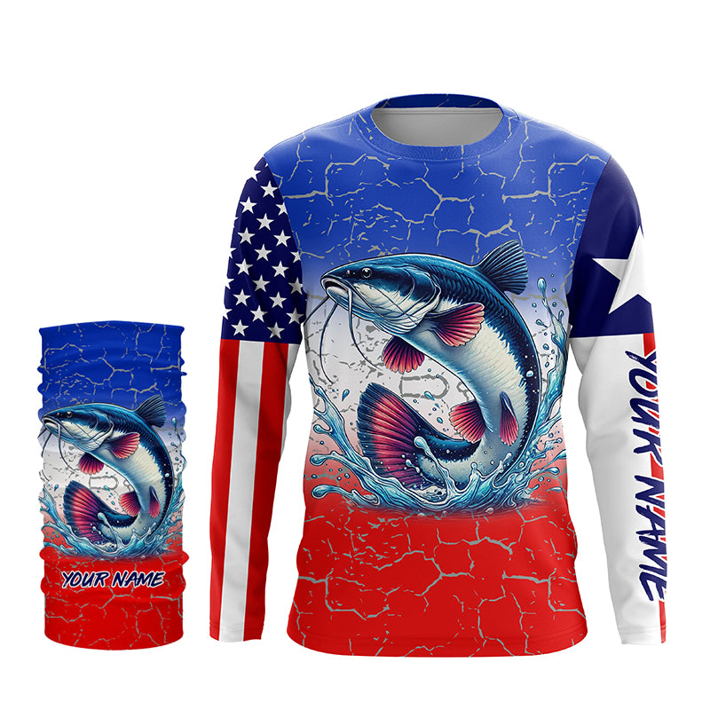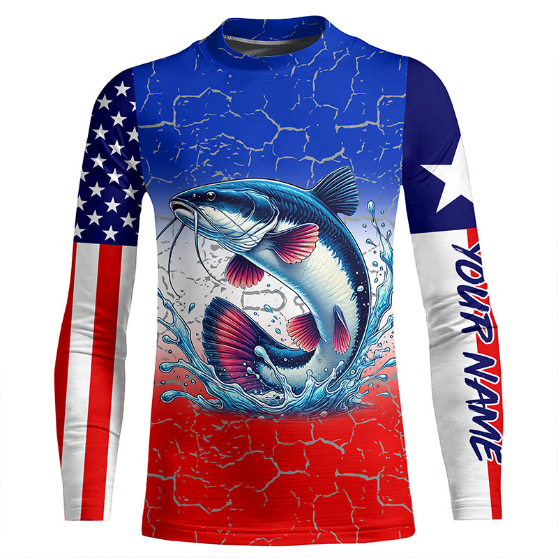 Personalized Catfish Long Sleeve Performance Fishing Shirt Texas American flag patriotic fishing Shirt NQS6677