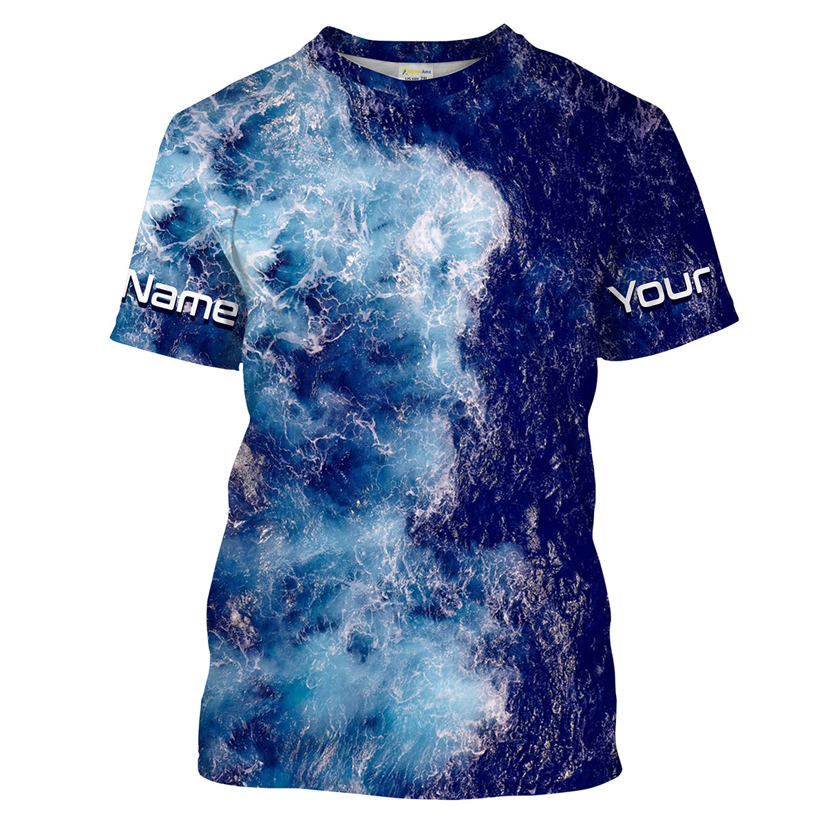 Personalized Saltwater Long sleeve Fishing Shirts UV Protection, Sea wave camo Fishing Shirts - IPHW1516