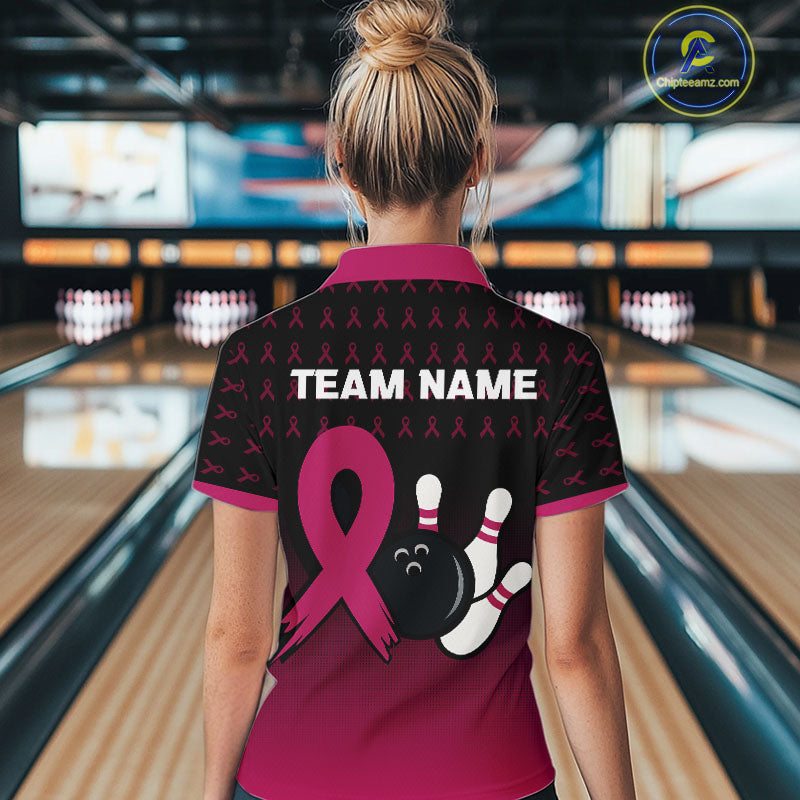 Black and Pink ribbon pattern Bowling shirts for Women Custom breast cancer bowling team jerseys NQS10158