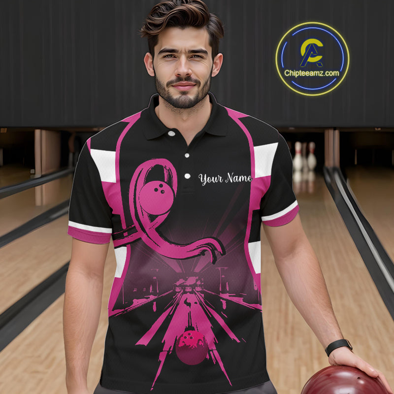 Breast Cancer Awareness Bowling Shirts For Men custom Black and pink ribbon team bowling jerseys NQS10207